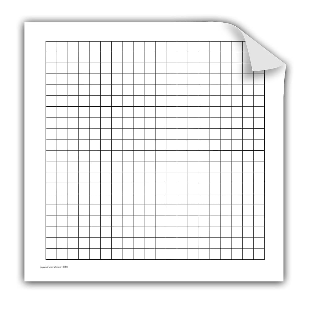 Write & wipe (dry-erase), 4-quadrant pressure sensitive grid Bold X & Y axis 1" squares, emphasized in 5s for easy reading Low-tac adhesive allows you to stick them anywhere.