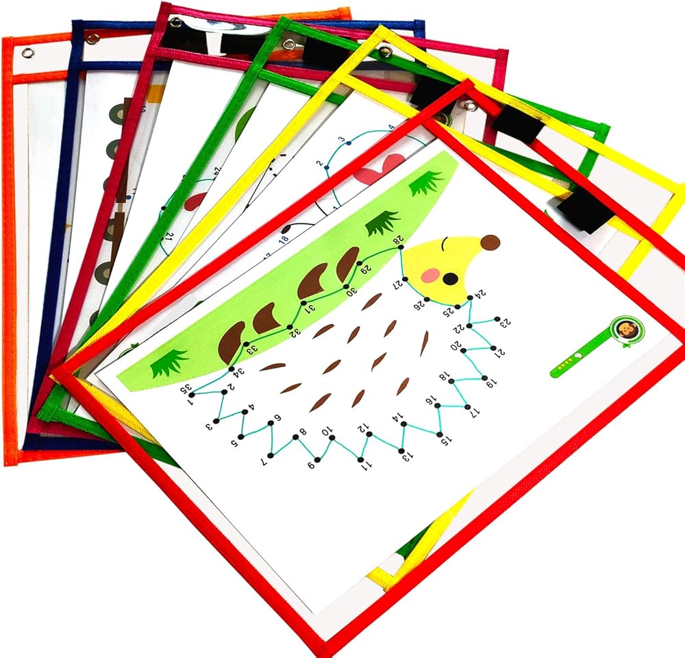 Erase Pockets provide multiple purposes, Protect your documents from coffee spills or messes,Take pages from coloring or activity books and use them over and over. Learn multiple subjects quickly, repeating and switching between worksheets with ease. Change up your bulletin board, make it easy for students or employees. To-do lists, calendars, or shopping lists,Warehouse ticket holders.