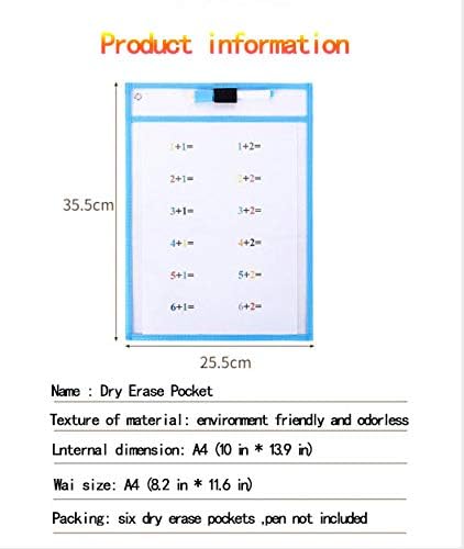 6 جيوب للمسح الجاف - أكمام للمسح الجاف كبيرة الحجم 10 × 13 بوصة - مستلزمات المعلم - للفصل الدراسي - قابلة لإعادة الاستخدام - جيوب للمسح الجاف - أكمام بألوان متنوعة 1