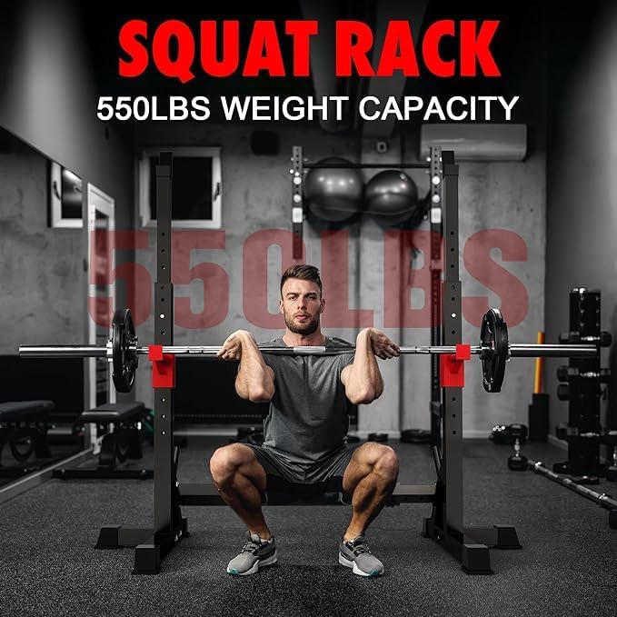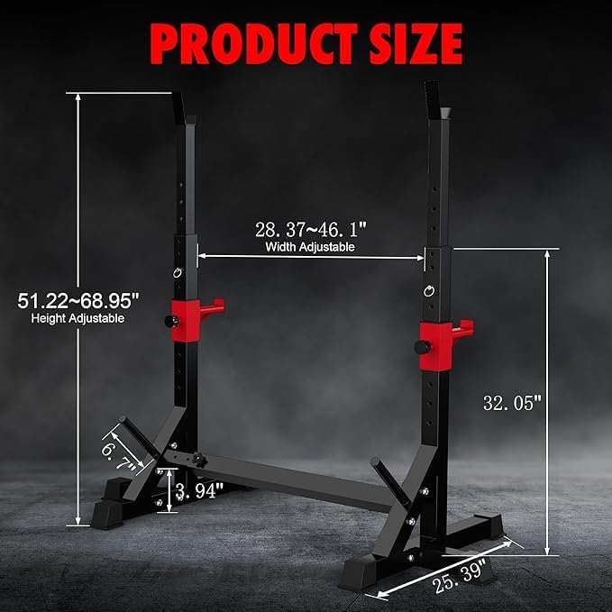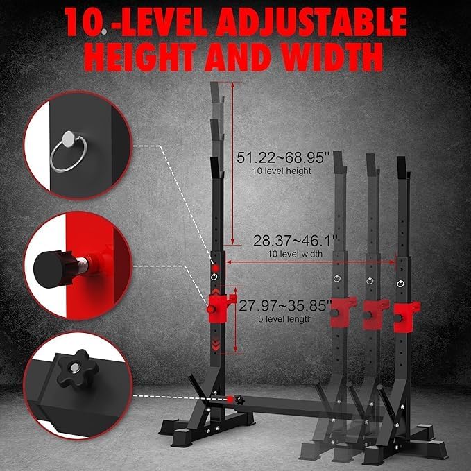 🏋【سعة وزن 550 رطل】: يستخدم حامل القرفصاء HS أنبوبًا مربعًا سميكًا معززًا مقاس 2 × 2 بوصة، والذي يحمل أقصى حمولة تصل إلى 550 رطلاً.