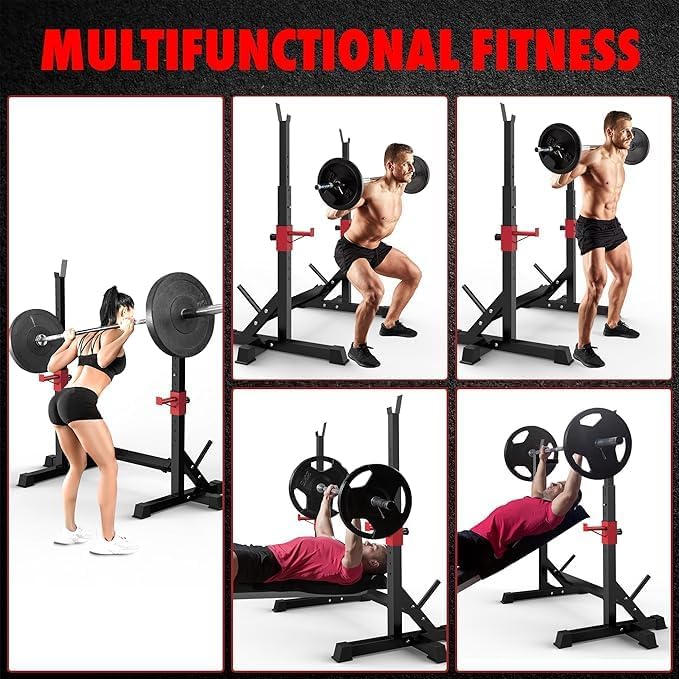 🏋【ملاءمة متعددة الوظائف】: يتيح لك التصميم متعدد الوظائف القيام بتمارين مختلفة بسهولة بما في ذلك الضغط على المقعد وضغط الكتف والقرفصاء والرفع العلوي والمزيد.