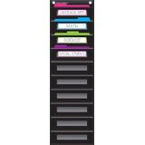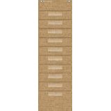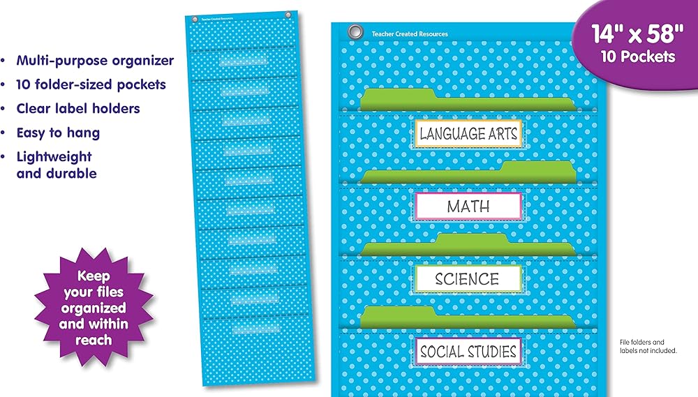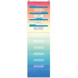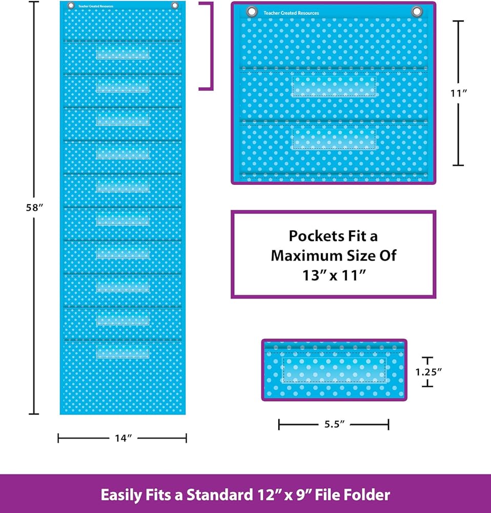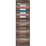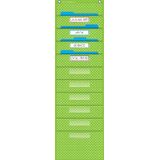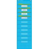 This burlap-looking vinyl pocket chart is lightweight and durable. The pocket chart hangs easily from sturdy, metal grommets. The non-porous surface is easy to clean and can be wiped-down or sprayed with disinfectant to help prevent the spread of germs. Measures 14" x 58".