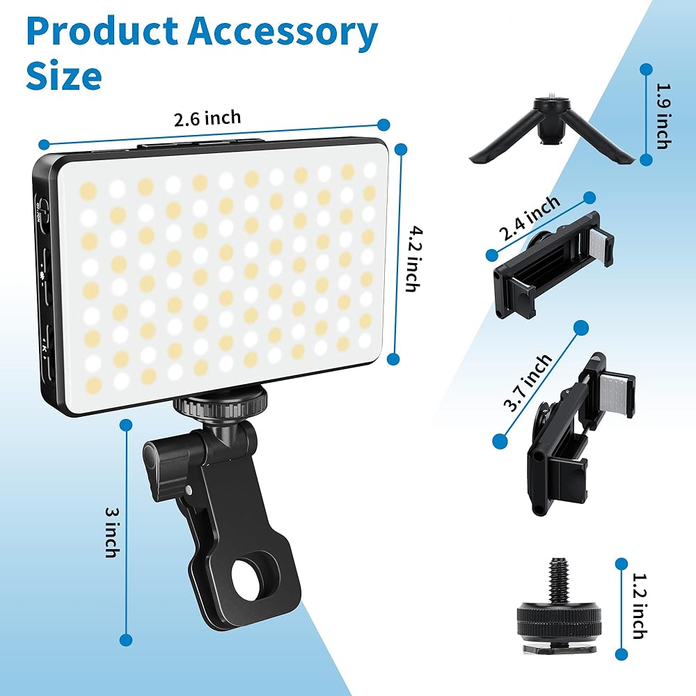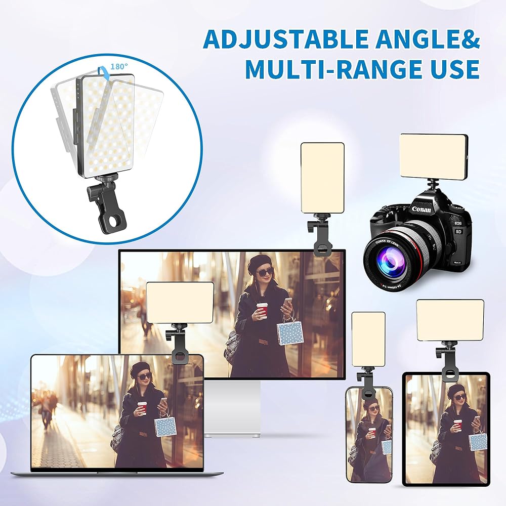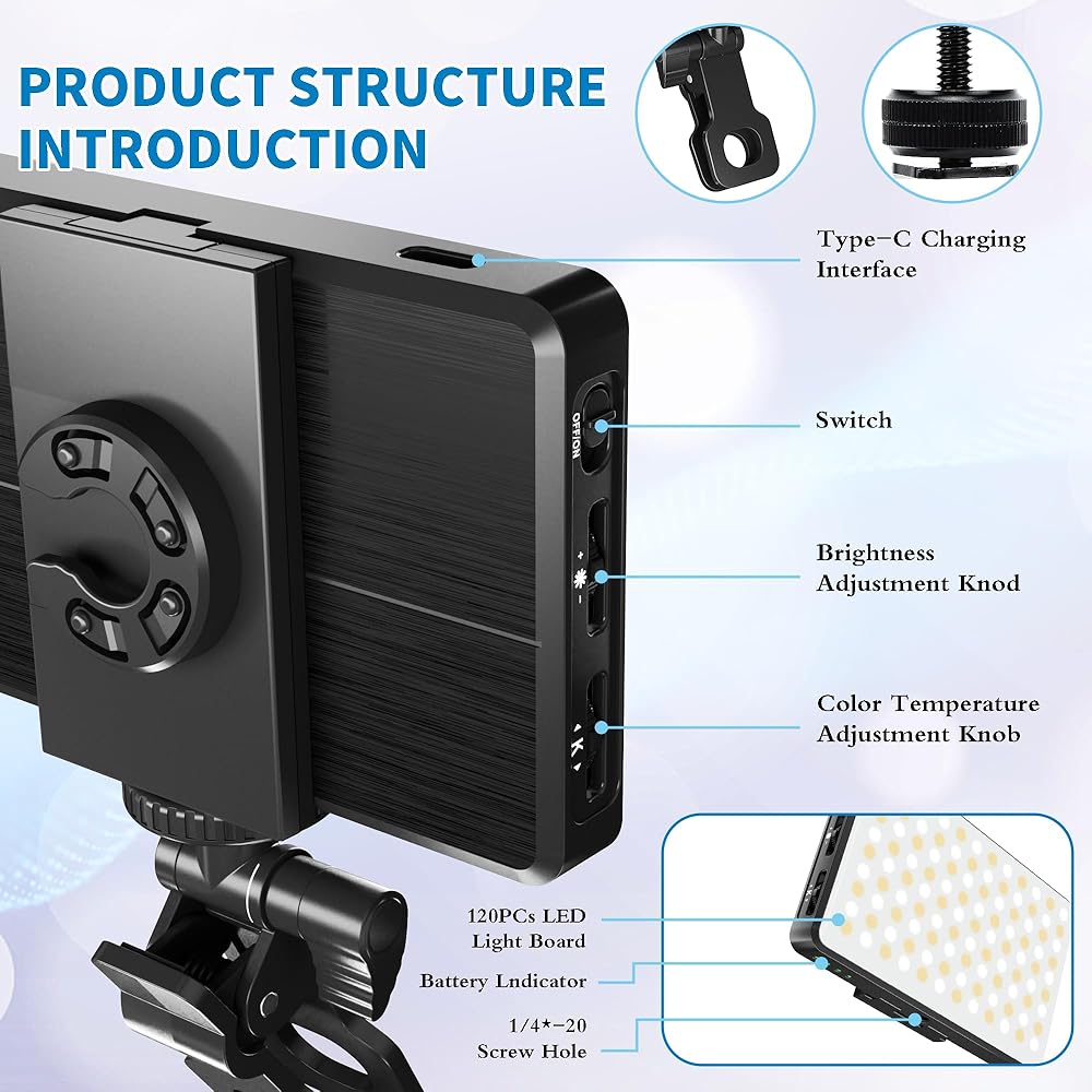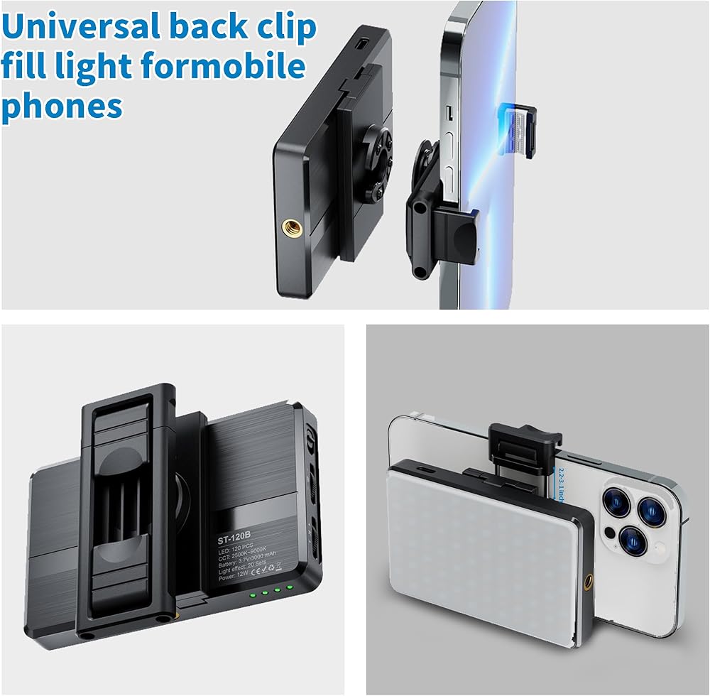 KK&H 120 مصباح LED خلفي للهاتف المحمول، مصباح سيلفي بمشبك، درجة حرارة لون قابلة للتعديل 2500K-9000K، ضوء تصوير قابل لإعادة الشحن بقدرة 3000 مللي أمبير في الساعة، مناسب للهواتف المحمولة والكاميرات وأجهزة الكمبيوتر المحمولة وأجهزة iPad