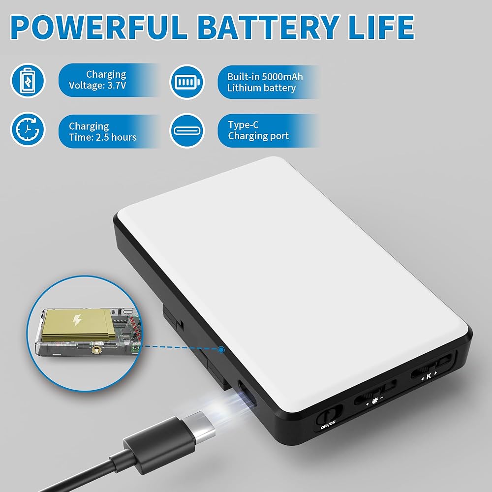 【بطارية قابلة لإعادة الشحن】 مزودة ببطارية ذات سعة كبيرة 3.7 فولت/3000 مللي أمبير في الساعة: يمكن استخدامها بشكل مستمر ويمكن أن تعمل لمدة ساعتين بأقصى سطوع وما يصل إلى 5 ساعات عند سطوع منخفض. واجهة الشحن عبارة عن مدخل Micro USB وType C، ويمكن شحنها من خلال معظم الأجهزة التي تدعم منافذ USB أو منافذ Type-C، مثل أجهزة الكمبيوتر المحمولة وأجهزة الكمبيوتر الشخصية وبنوك الطاقة وشواحن USB وشواحن السيارات وما إلى ذلك. أكثر ملاءمة وأسرع للحمل والاستخدام