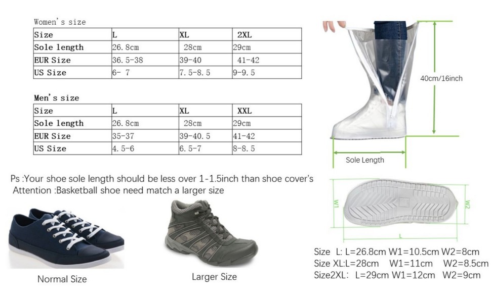 يمكن ارتداؤها وخلعها بسهولة - تتميز أغطية الأحذية العصرية والقابلة للتعديل بفتحة جانبية واسعة وسحاب جانبي، وهو أمر سهل الارتداء والخلع. الحزام المرن في الأعلى سيربط حول ساقك، مما يمنع غطاء الحذاء من الانزلاق للأسفل. ملاحظة: اختر مقاس غطاء الحذاء أطول بمقدار 0.5-1 بوصة من طول نعلك