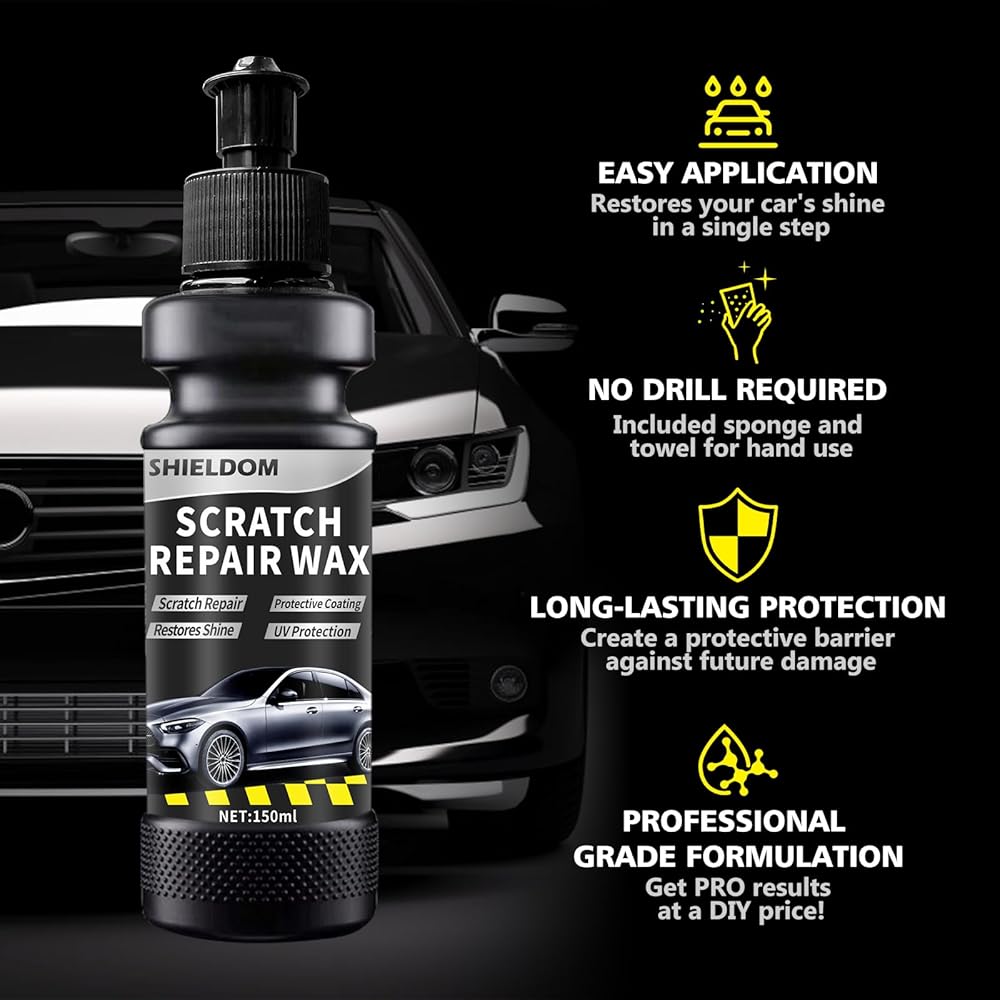 مزيل خدوش السيارة من شيلدوم، إصلاح خدوش المركبات، شمع طلاء السيارات، إعادة ترميم الأسطح، ممحاة، مجموعة من البولندية | 1x إسفنجة | 1x منشفة | - 5 أونصة / 150 مل
