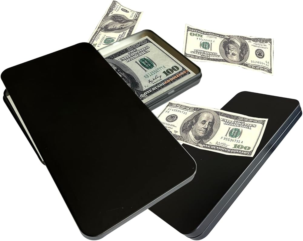 Stylish and Practical: The money box for cash saving design is simple and fashionable, Its black metal design exudes sophistication, Its slim design allows for easy storage in cabinets, lockers, your pocket or even any other space you prefer, making it not only a practical cash storage solution but also a stylish home decoration.