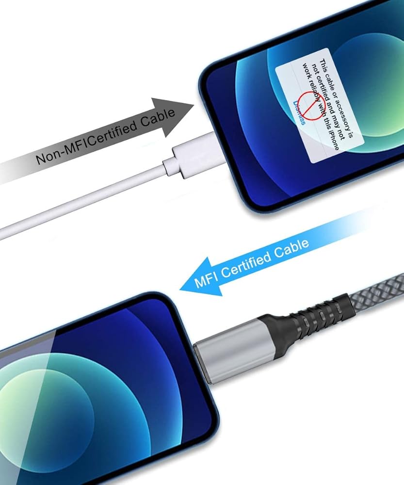 ⍟ حماية Apple MFI ⍟ --- قل وداعًا للإشعارات المنبثقة المزعجة واستمتع بالموسيقى المفضلة لديك بمساعدة هذا الكابل المعتمد من MFI.