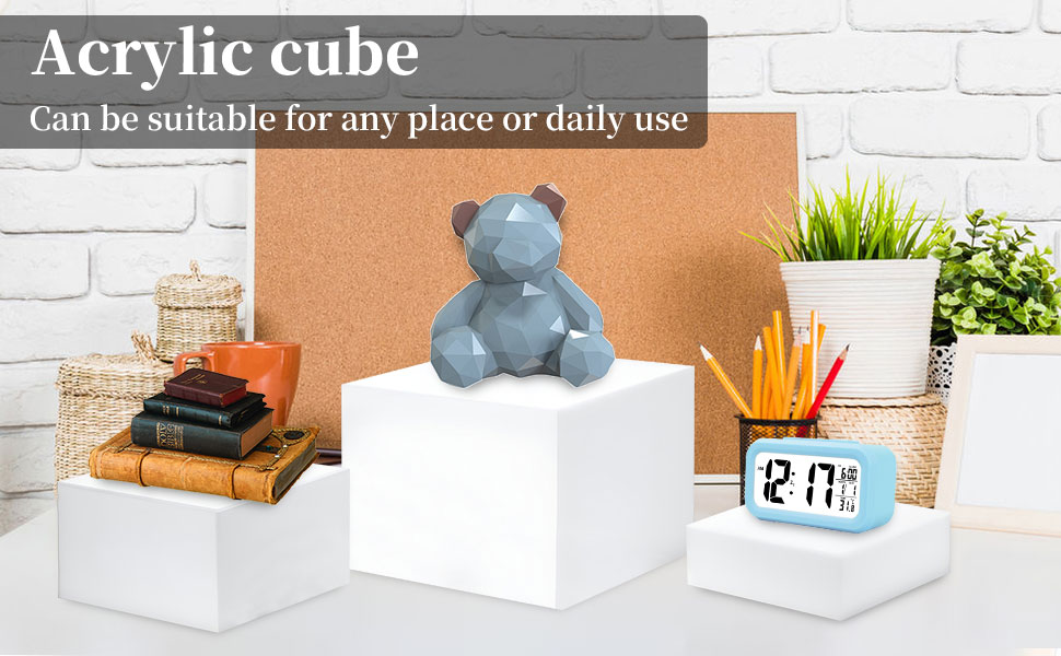 تصميم مجوف متداخل: يتميز حامل العرض المكعب الأكريليك بتصميم مجوف في الأسفل، والذي يمكن تداخله وتكديسه لتوفير المساحة عند عدم الاستخدام. يمكنك أيضًا قلبها رأسًا على عقب لتوفر لك مساحة تخزين جيدة لمختلف العناصر الصغيرة، مما يجعل سطح المكتب الخاص بك يبدو أكثر تنظيمًا.