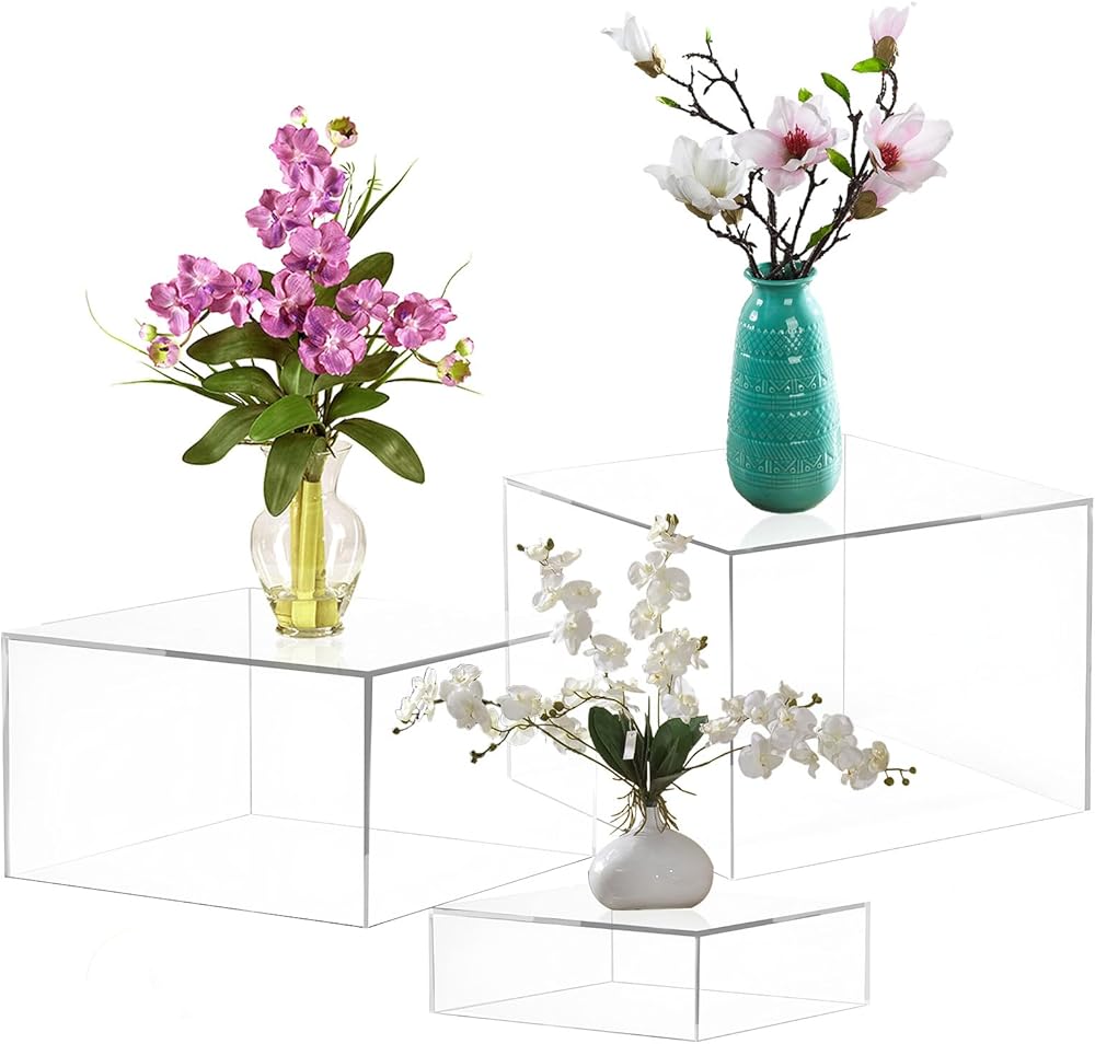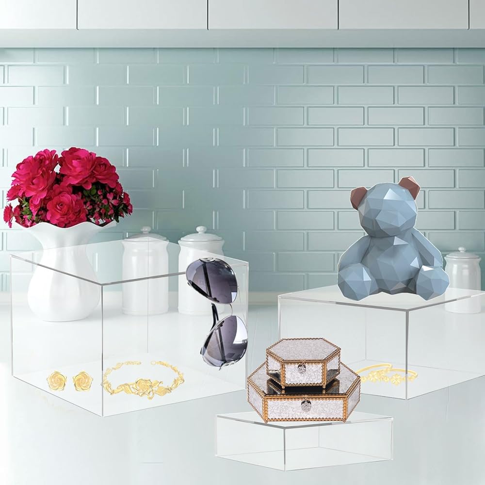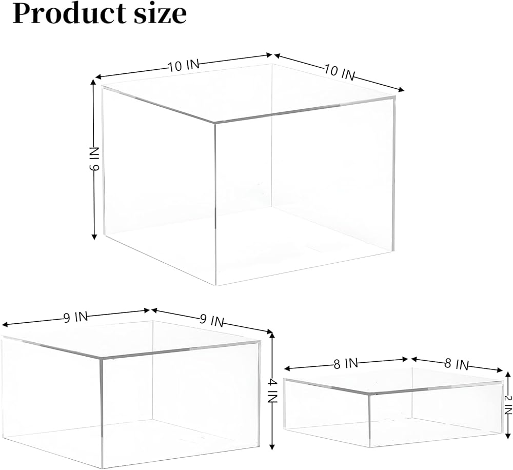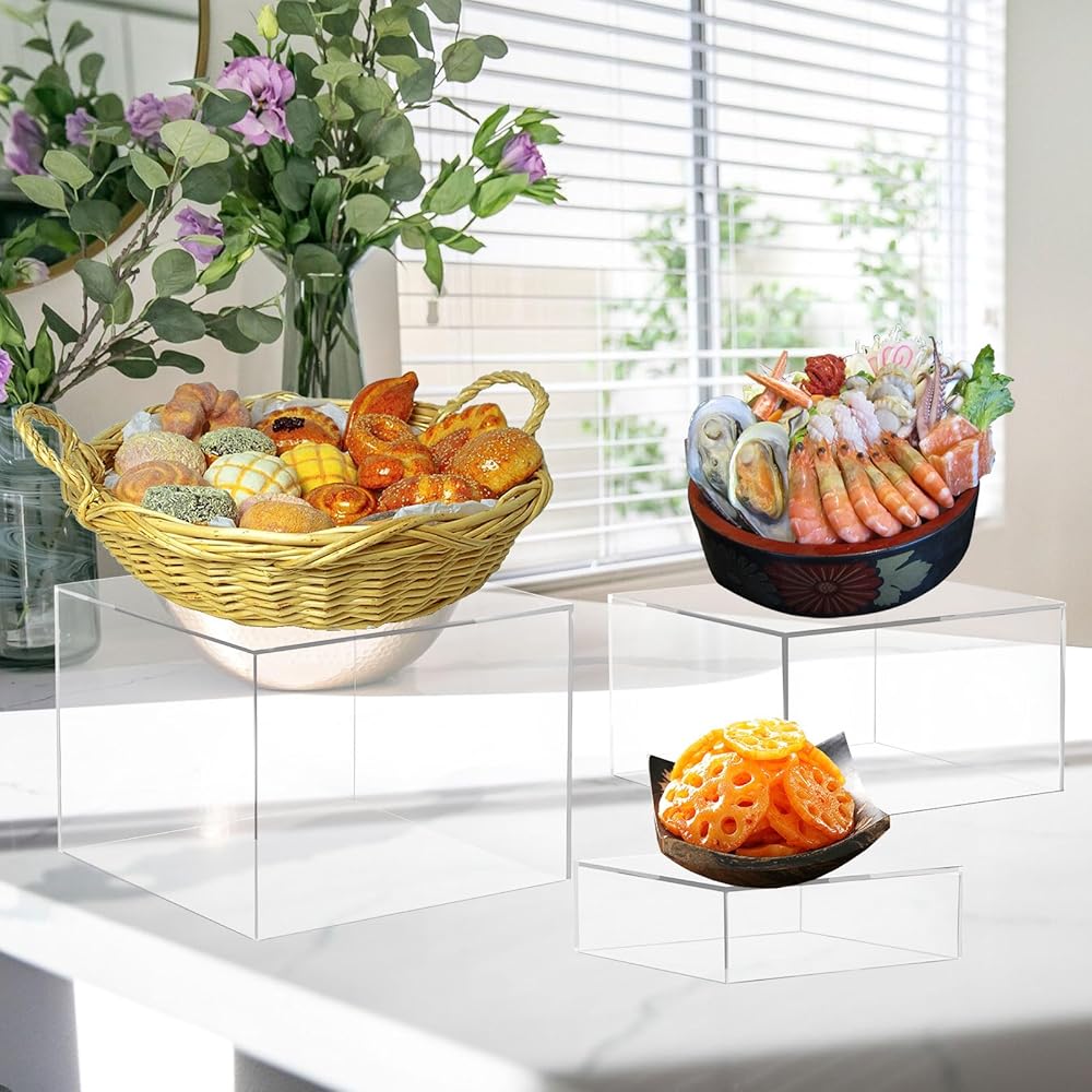 رافعات البوفيه، رافعات الطعام لطاولة البوفيه، رافعات التعشيش على شكل مكعب أكريليك مع قاعدة مجوفة، رف حامل العرض لمقتنيات الحلوى، أشكال المجوهرات، 8 بوصة × 9 بوصة × 10 بوصة شفافة 3 قطع