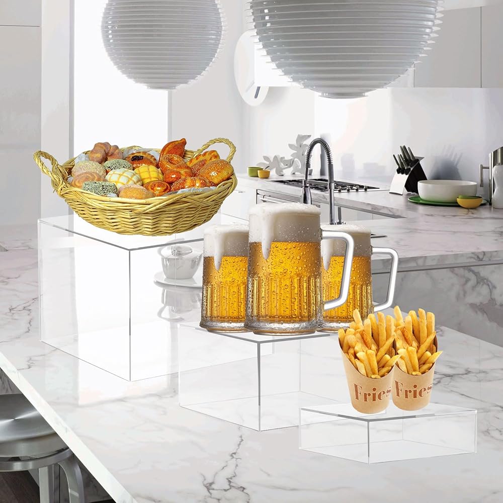 متينة وقابلة لإعادة الاستخدام: على عكس رافعات العرض البلاستيكية الهشة الأخرى، تستخدم رافعة عرض الطعام WHSLILR أكريليك ممتاز بسمك 3 مم مع حواف مصقولة، متينة للغاية وقوية، وخفيفة الوزن وليس من السهل تشويهها أو كسرها، بما يكفي لدعم أي طبق وكؤوس نبيذ، والتي يمكن تلبي احتياجاتك بسهولة للمناسبات العائلية الصغيرة أو بوفيهات الحفلات الكبيرة.
