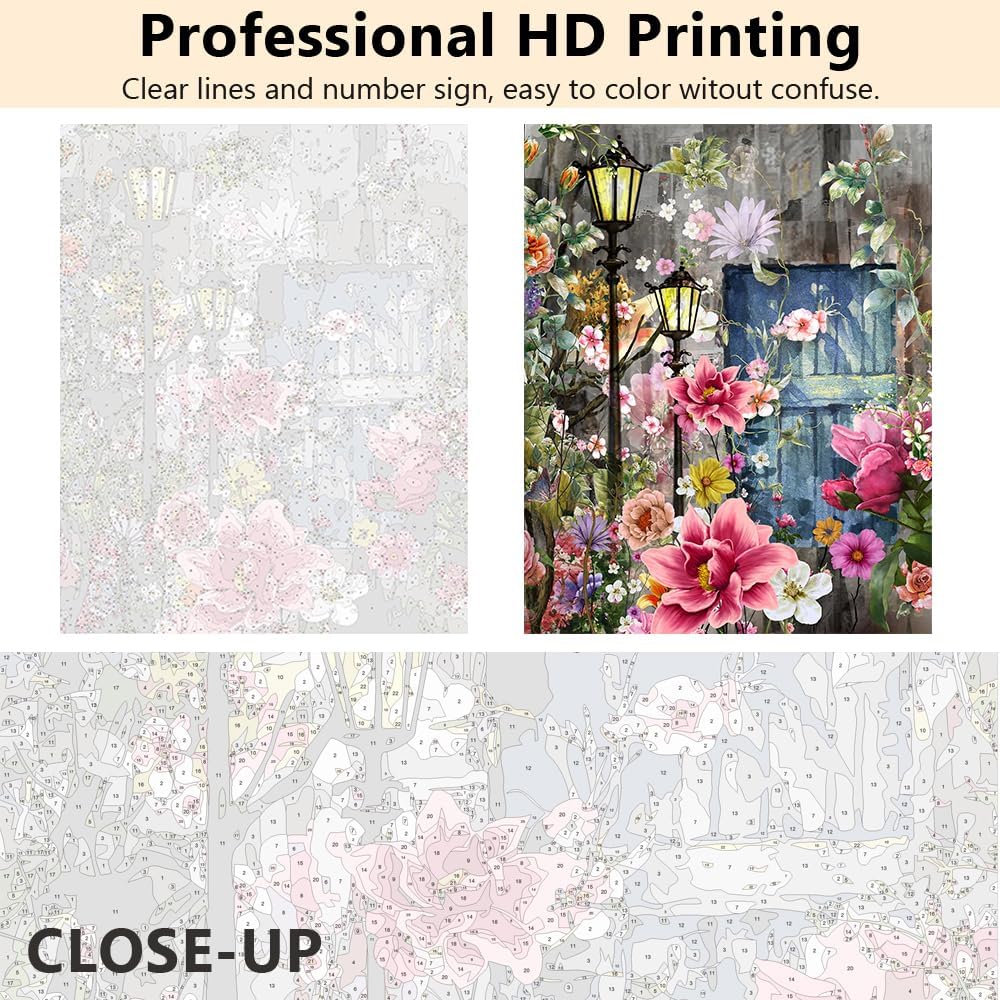 TUMOVO DIY الطلاء بالأرقام للبالغين مع فرش الزهور الكبار الطلاء حسب الأرقام مجموعات على قماش النفط اللوحة اليدوية طلاء الأزهار بالأرقام الحرف الفنية لديكورات الجدران المنزلية 16 "× 20" (بدون إطار)