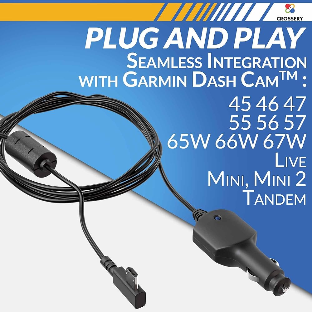 Introducing the Crossery car charger power cord for Garmin Dash Cam Mini 2. This high-quality charging cable is designed specifically for Garmin Dash cam devices. It is an essential accessory for any Garmin device user, providing a reliable and efficient power source for your device.