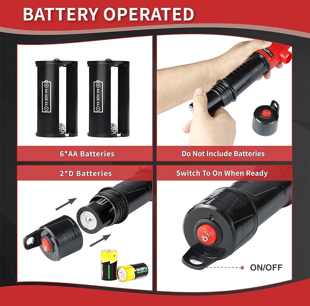 [محمولة ومريحة]: مجهزة بجهاز تحويل البطارية، يمكنك اختيار استخدام بطاريتين D أو 6 بطاريات AA (البطاريات غير متضمنة). يمكنك أيضًا استخدام بطاريتين AA في حالات الطوارئ.