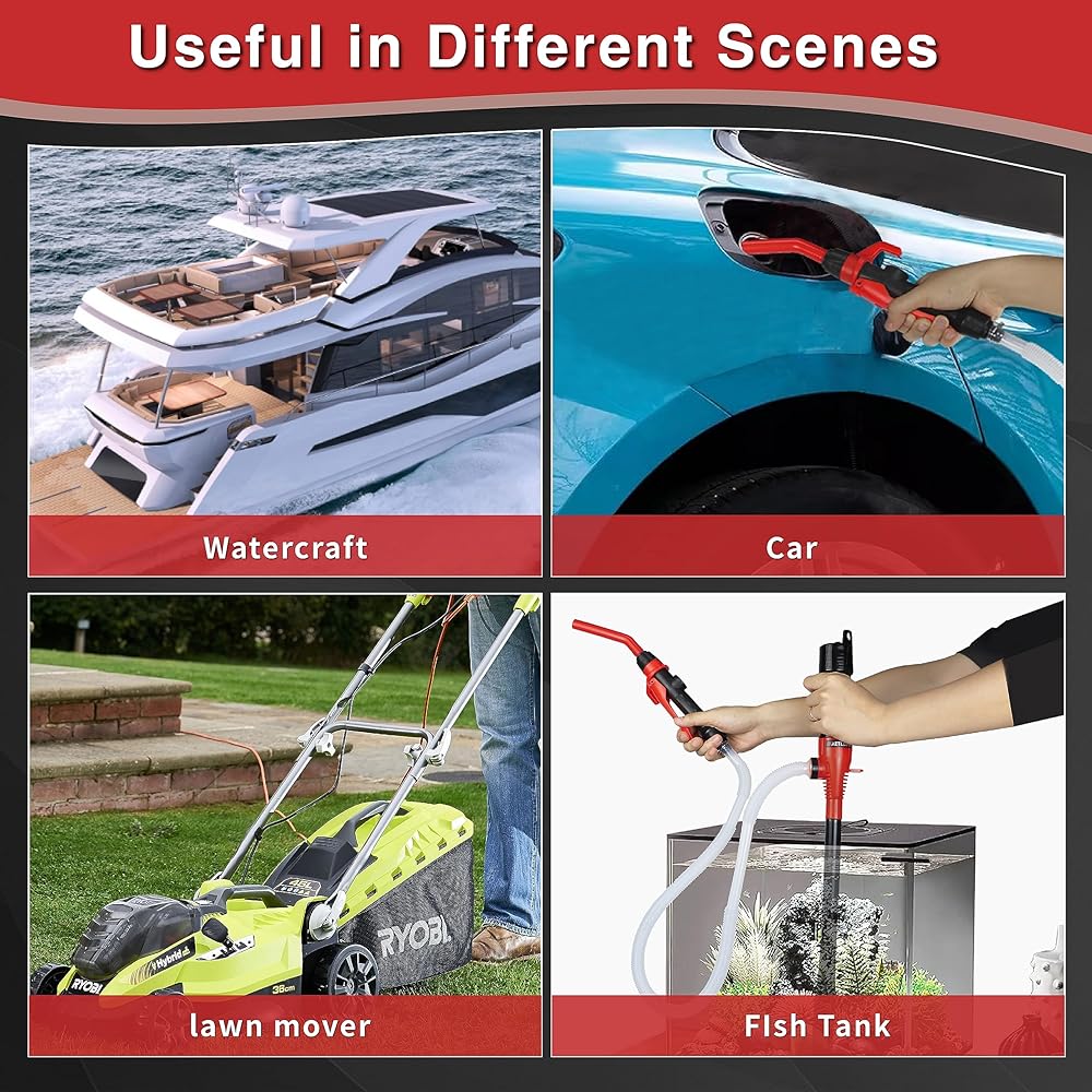 【التطبيق على نطاق واسع: إنه مناسب للبنزين والكيروسين والديزل والزيت الخفيف والماء والمبيدات الحشرية الكيميائية والصابون والمنظفات ومزيلات العرق والأحماض الضعيفة ومضاد التجمد وما إلى ذلك. إنه مثالي لملء أو تفريغ مولدات الطوارئ الخاصة بك، وركوب جزازات العشب. ومعدات الفناء والحدائق ومركبات المرافق والمركبات الرباعية وآلات البناء والسيارات والدراجات النارية والمركبات الترفيهية ومعدات التنظيف.