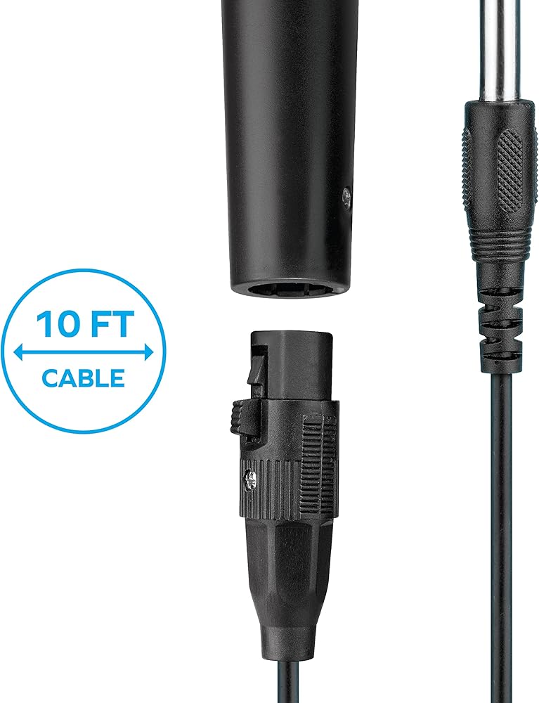 كابل قابل للفصل بطول 10 أقدام: يبلغ طول كابل الميكروفون الديناميكي 10 أقدام، مما يمنحك مساحة كبيرة لتوصيل أنظمة الصوت والكاريوكي المفضلة لديك به. علاوة على ذلك، يحتوي الميكروفون على زر سهل التحرير يسمح لك بفصل الكابل بسهولة للتخزين.