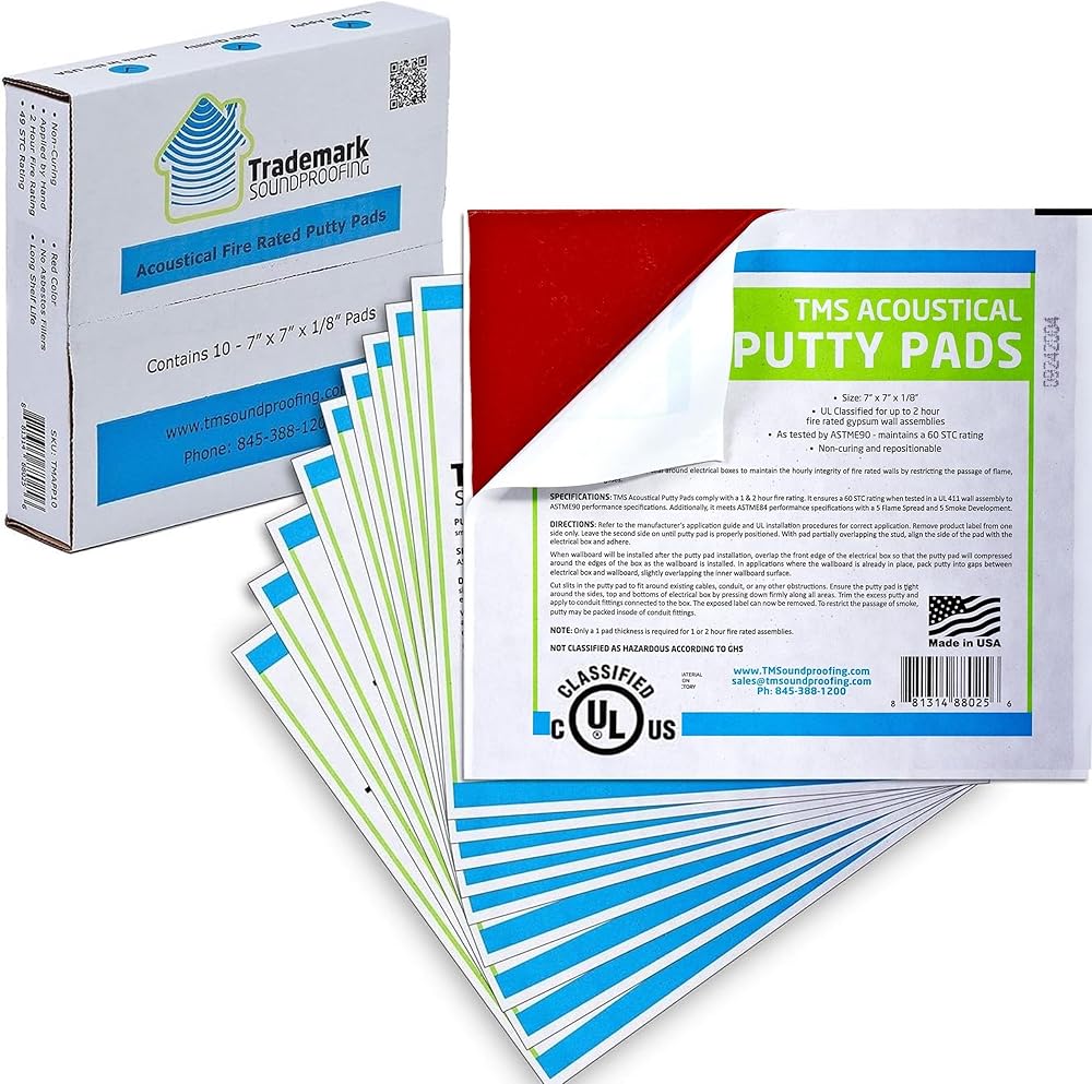 عبوة قيمة - يحتوي كل صندوق على 10 وسادات معجون بسمك 17.78 سم × 17.78 سم × 1/8 سم، مادة منتفخة تمنع الصوت (والهواء) من التسرب عبر المنافذ.
