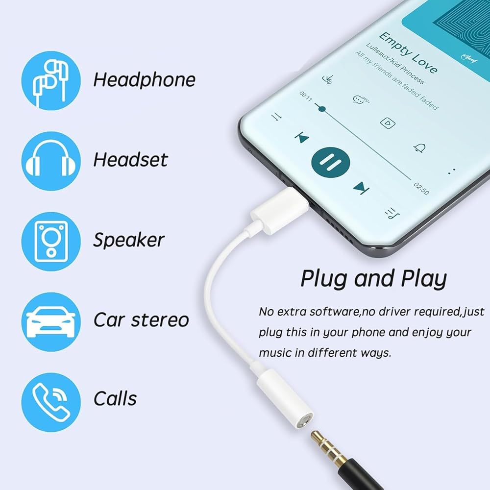 This type c to 3.5mm aux adapter is special designed for i-Phone 15/15 Plus / 15 Pro/15 Pro Max . Now, many mobile phones without headphone jack, this adapter can solve this problem.You can use it to play music from headphone,Bluetooth speaker with 3.5mm aux port. It is very easy to use, just plug and play.