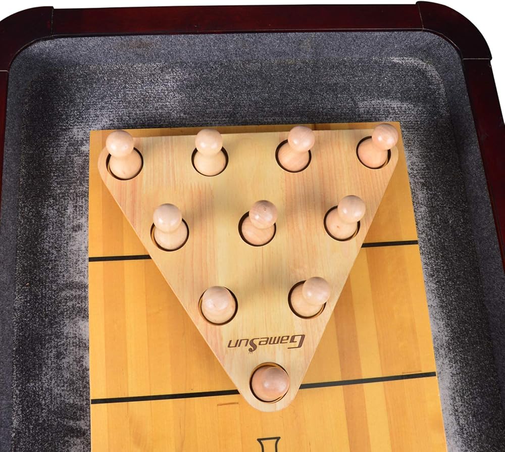 - The Shuffleboard Bowling Pin Set includes 10 solid hardwood bowling pins
