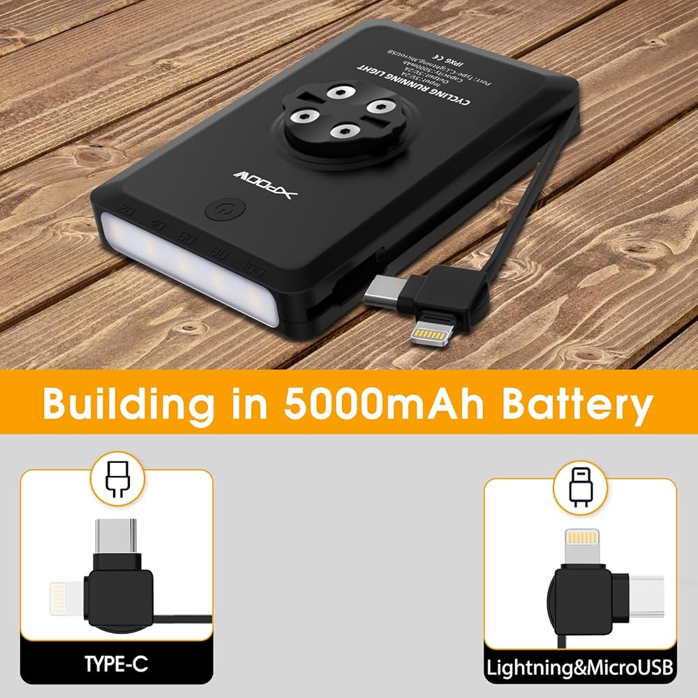 • 【قابلة لإعادة الشحن من النوع C】يذكرك المؤشر الأحمر بالشحن في الوقت المناسب، ويومض الضوء الأحمر عند شحن طاقة البطارية. بناء بطارية 5000 مللي أمبير في الساعة، مما يطيل عمر بطارية كمبيوتر ركوب الدراجات وكاميرا الحركة عند الركوب.