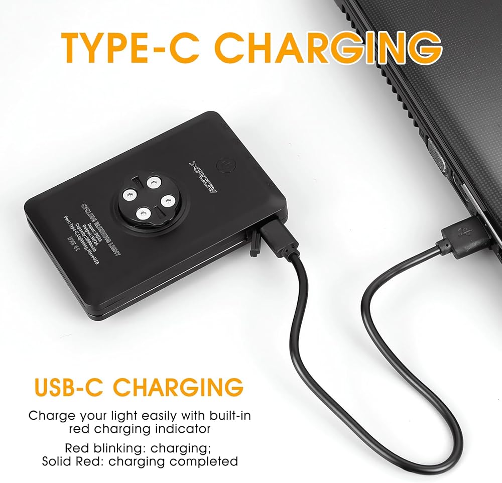 • 【مقاومة للماء بدرجة IPX6】مع تصنيف IPX6 المقاوم للماء، يبقى ضوء الدراجة الخاص بنا باردًا في الأيام الممطرة (تذكر تشديد غطاء منفذ الشحن)؛ الجزء السفلي من عروة التثبيت مطلي جيدًا أيضًا بـ PA+30GF% لتحمل التثبيت المتكرر؛ تزن 120 جرامًا فقط، ولن تثقل رحلتك.