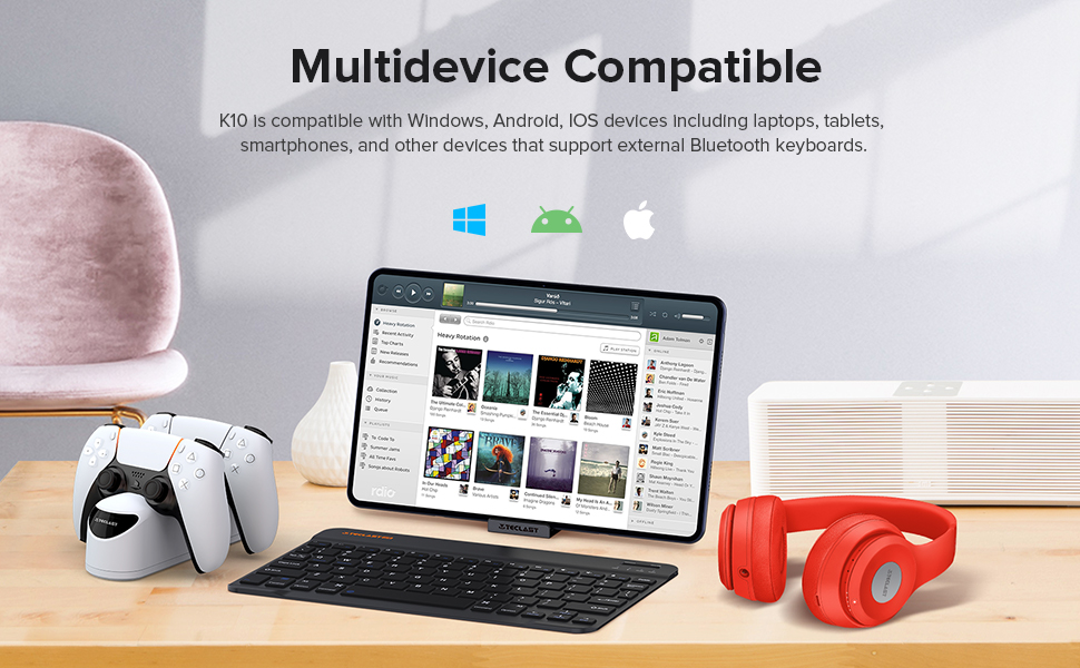 ❤【خفيفة ولكن خالية من الكابلات】بسمك أقل من 6 مم، يمكنك حمل لوحة المفاتيح هذه في حقائب، حتى أثناء السفر. اتصال بلوتوث مع الأجهزة اللوحية أو الهواتف المحمولة، يمنحك المزيد من الراحة عندما تحتاج إلى الكتابة.
