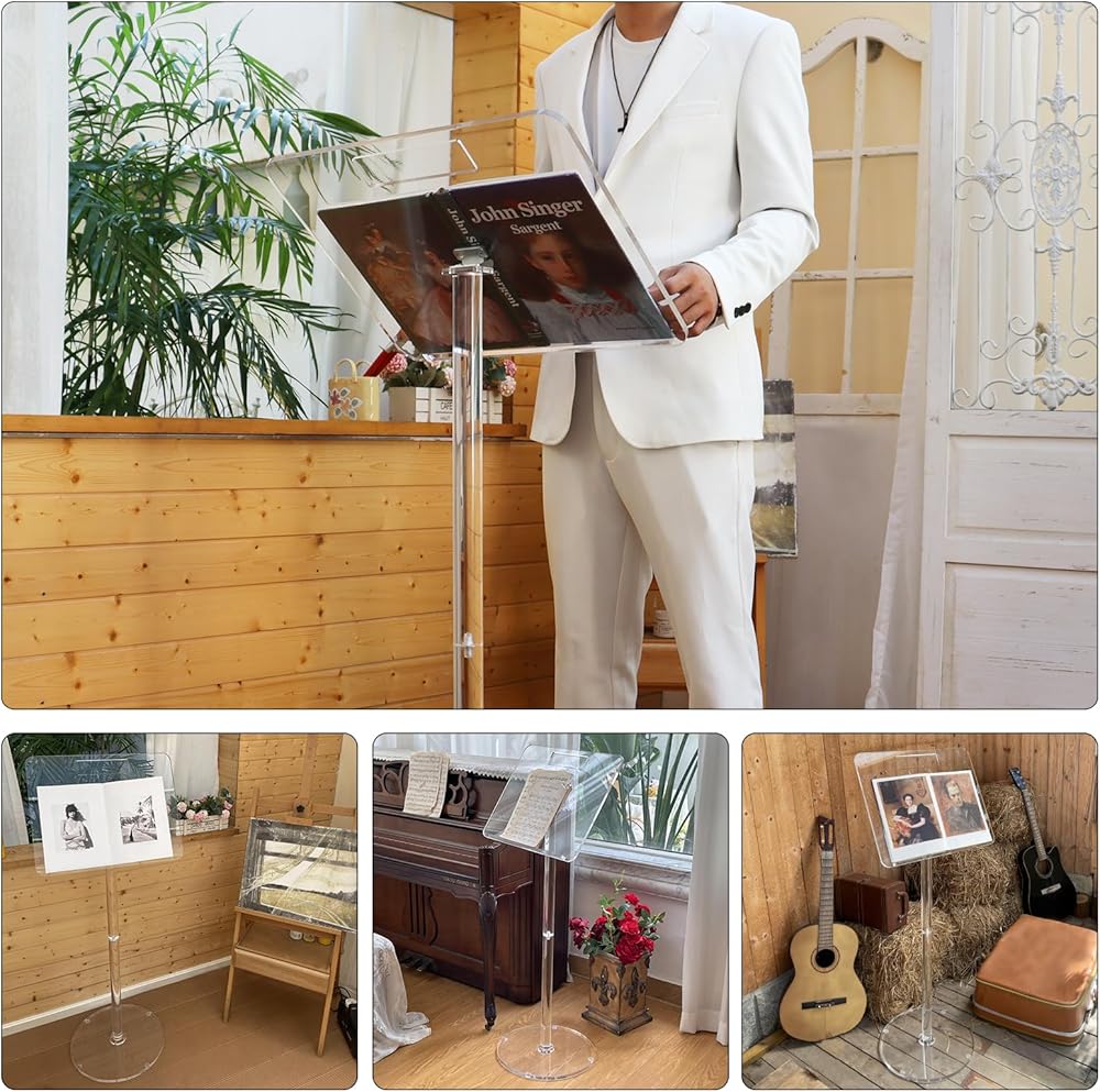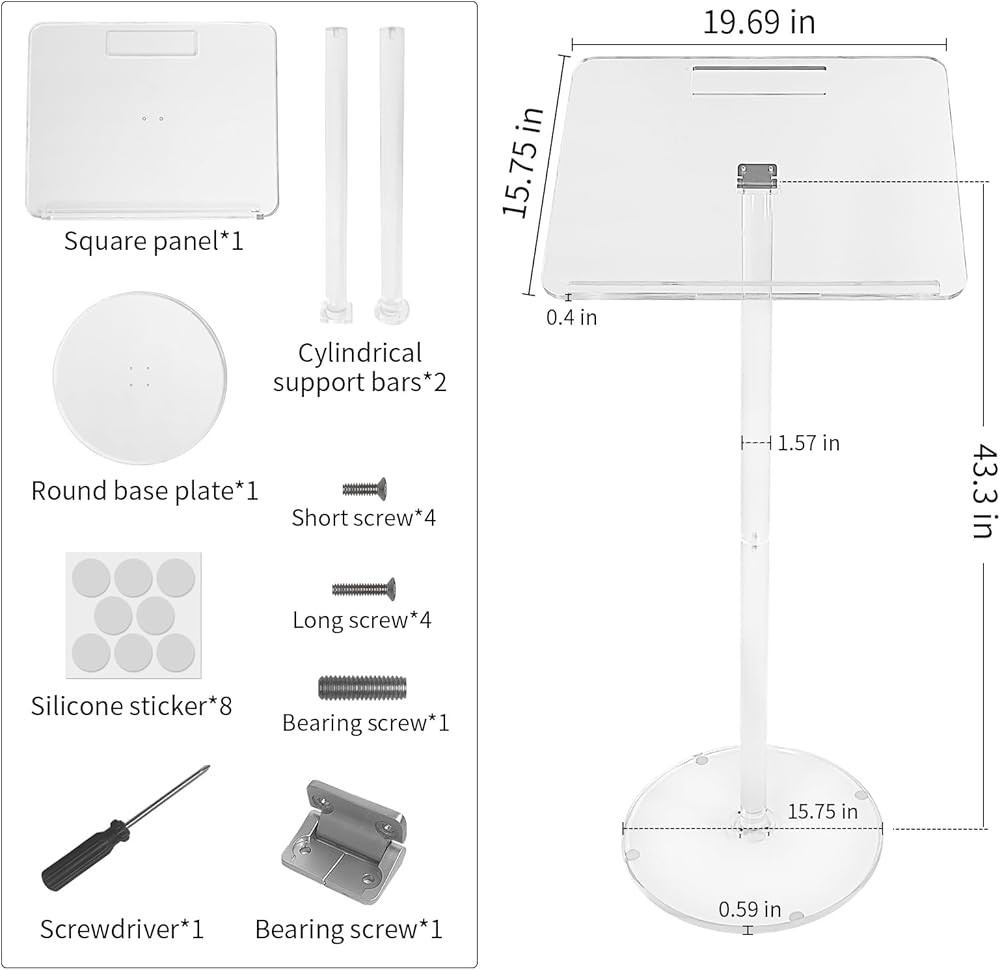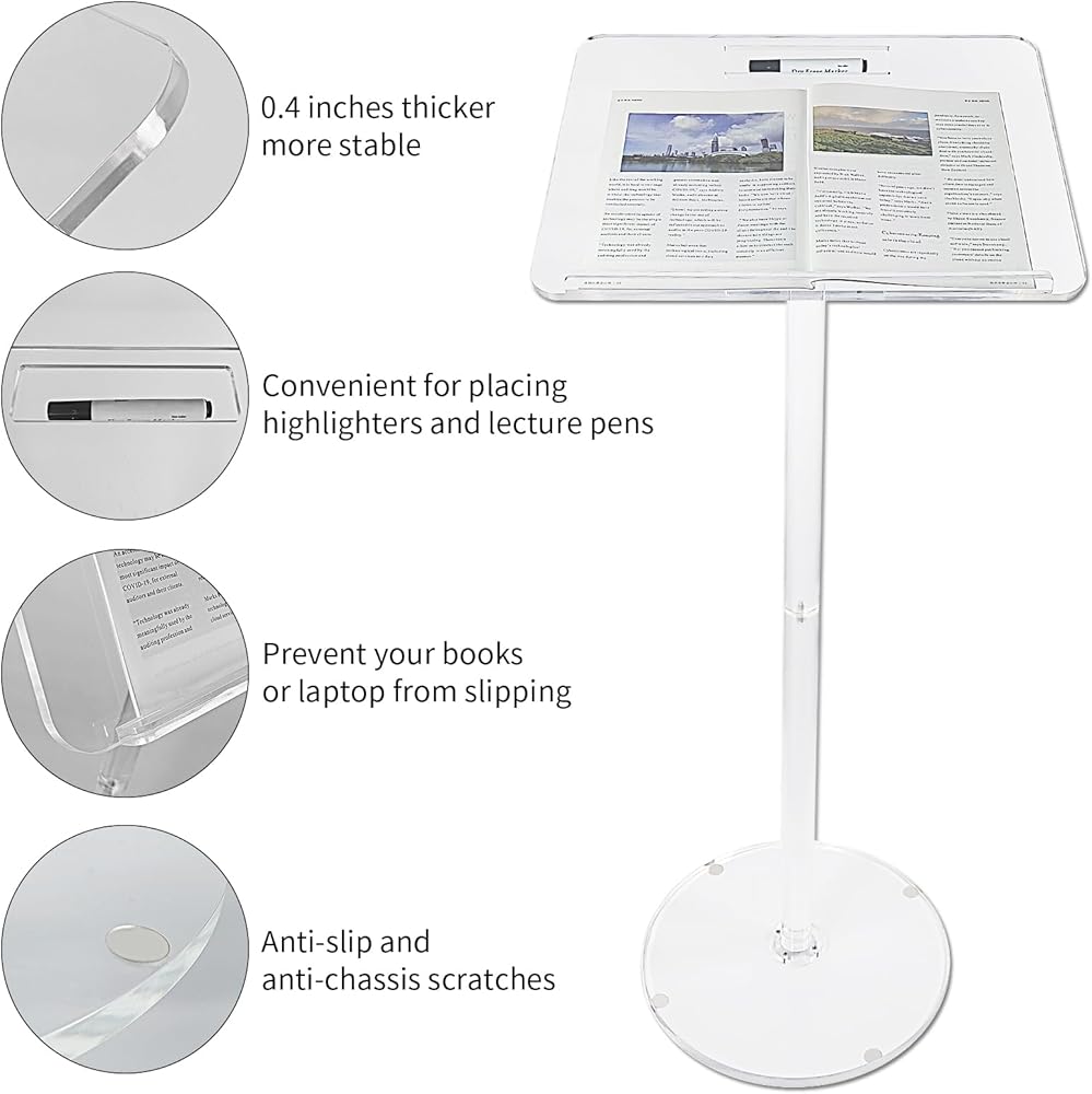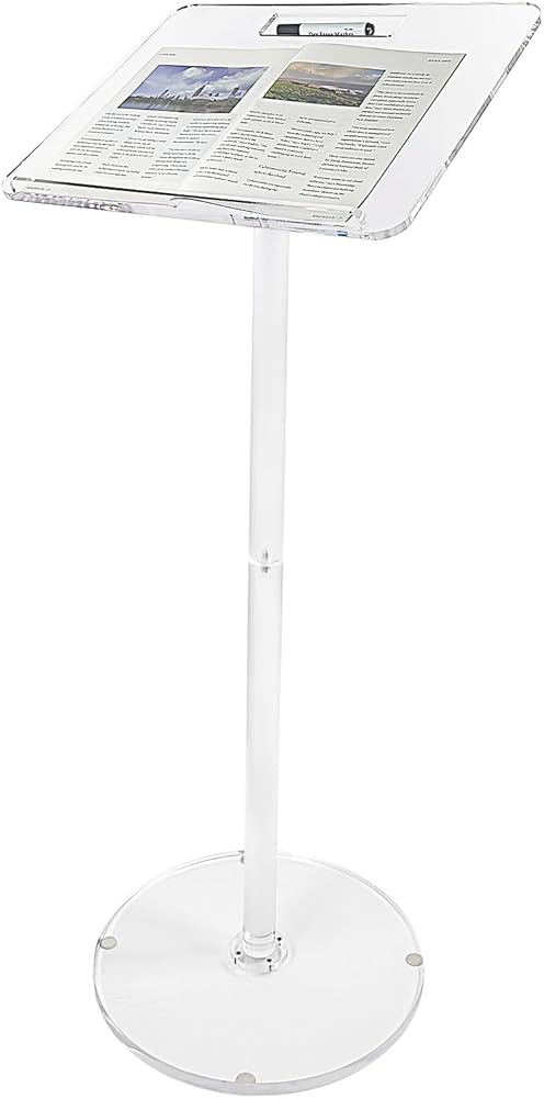 منصة قوية وجيدة الصنع - منصة الأكريليك مصنوعة من الأكريليك عالي الجودة فائق الوضوح مع فتحة للقلم. تصميم ممتاز والمواد المستخدمة للمنصة، تتكون من لوح وقاعدة بسمك 0.4 بوصة و0.59 بوصة على التوالي. يندمج المنصة بسلاسة مع البيئة المحيطة به، مما يجعله مثاليًا لأي استخدام. من السهل جدًا تجميعها، وقوية، ومصنوعة بشكل جيد، وأنيقة. إنه خفيف بما يكفي للتحرك والتخزين بسهولة. أضف لمسة من الأناقة والرقي إلى مساحتك الخاصة.