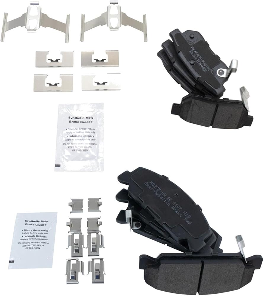 (1) Rear Semi-Metallic Brake Pad Set with Contact Point Grease & Hardware