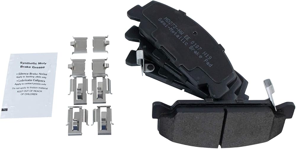 (1) Front Semi-Metallic Brake Pad Set with Contact Point Grease & Hardware