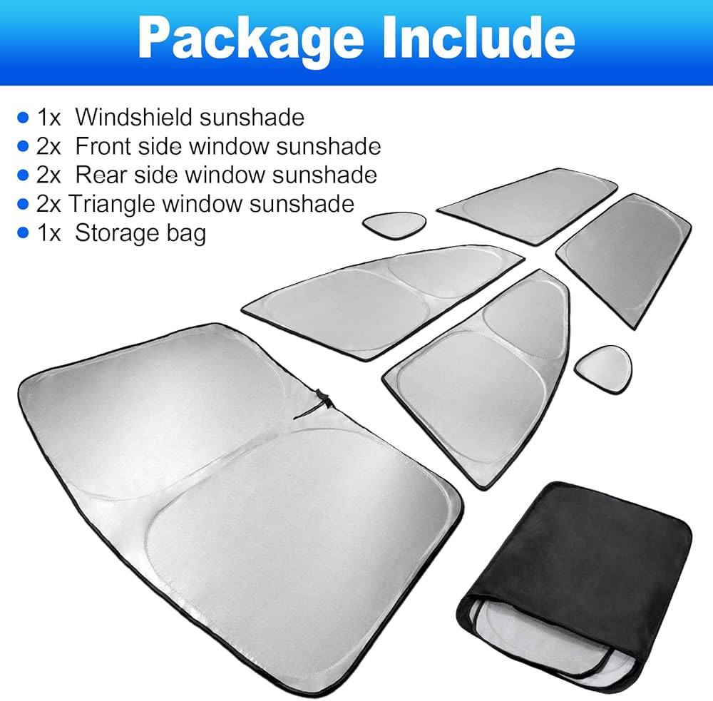 [غطاء كامل لمظلة الشمس] مظلة Spurtar للخصوصية لعام 2019-2023 Tesla Model Y تتضمن مجموعة كاملة من 8 قطع من ظلال الشمس: 1x زجاج أمامي، 4x نوافذ جانبية، 2x نوافذ مثلثة، و1x زجاج أمامي خلفي. لضمان أقصى قدر من التغطية والحماية، من السهل تركيب وإزالة الزجاج الأمامي المظلل لأشعة الشمس للسيارة بالكامل.