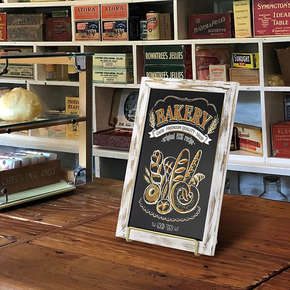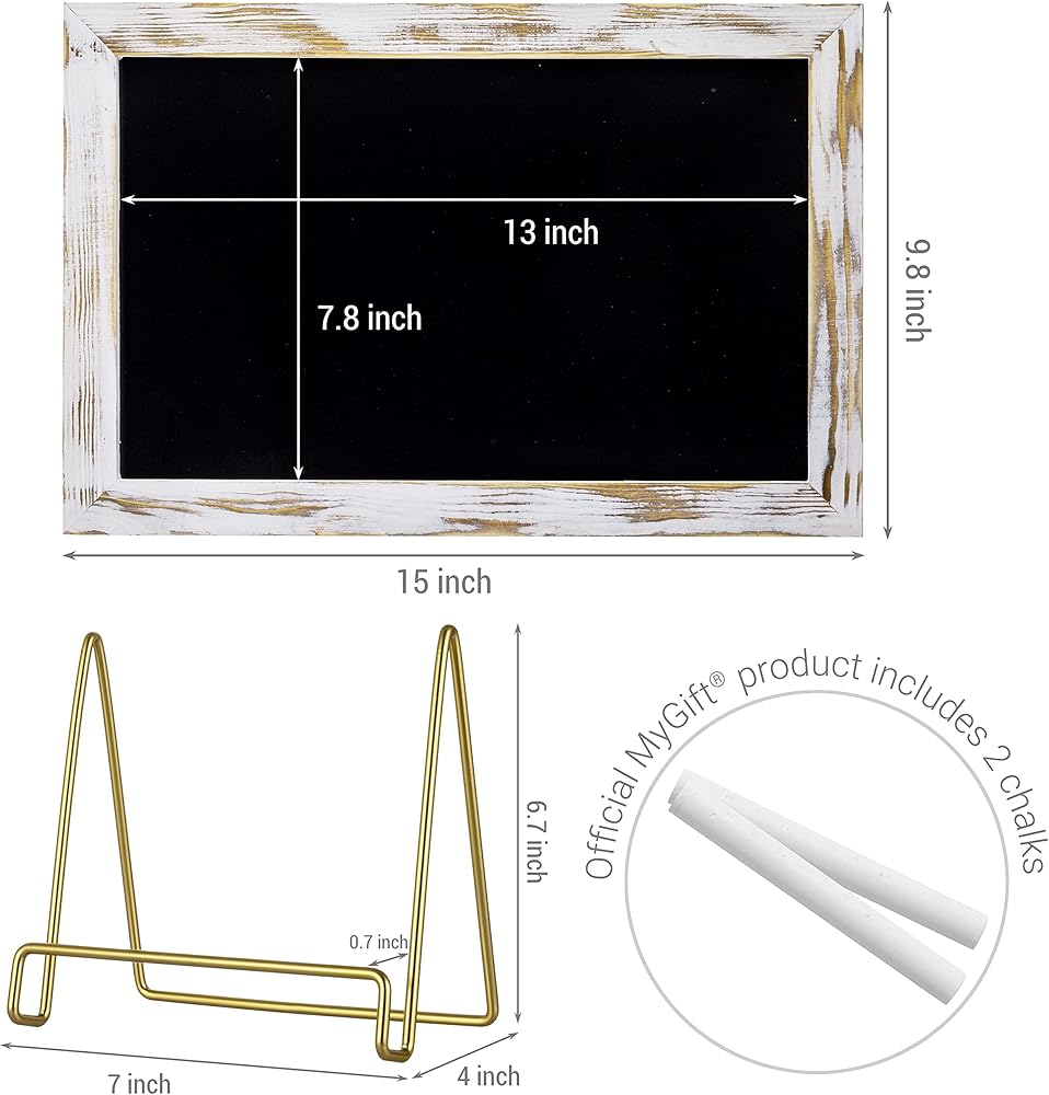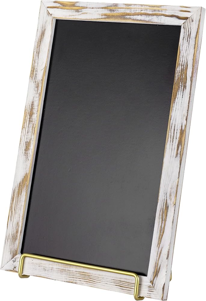 لافتة سبورة من الخشب الأبيض المطلي على سطح الطاولة مع حامل سلك معدني نحاسي عتيق لحفلات الزفاف، والمناسبات، والمطاعم، والبوتيكات، أو ديكور المنزل