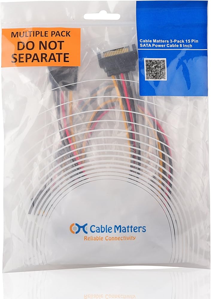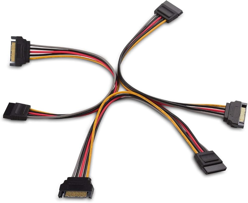 وصلة سهلة الاستخدام من ذكر إلى أنثى كابل طاقة SATA يربط مصدر طاقة الكمبيوتر بـ Serial ATA HDD وSSD ومحركات الأقراص الضوئية وشعلات DVD وبطاقات PCI؛ قم بالتوصيل مباشرة أو تمديد كابل SATA موجود باستخدام كابلات الطاقة SATA المكونة من 3 حزم فعالة من حيث التكلفة