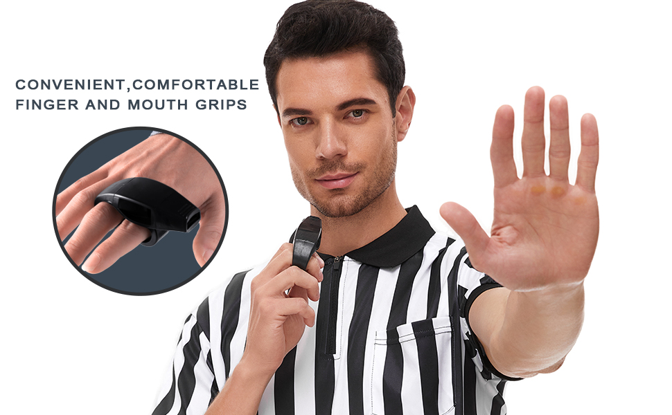 • صافرة للمدربين: تتميز صافرة الحكم المرنة بمقابض أصابع مريحة ومقابض للفم يمكن تعديلها لتناسب ما بين 2 إلى 3 أصابع.