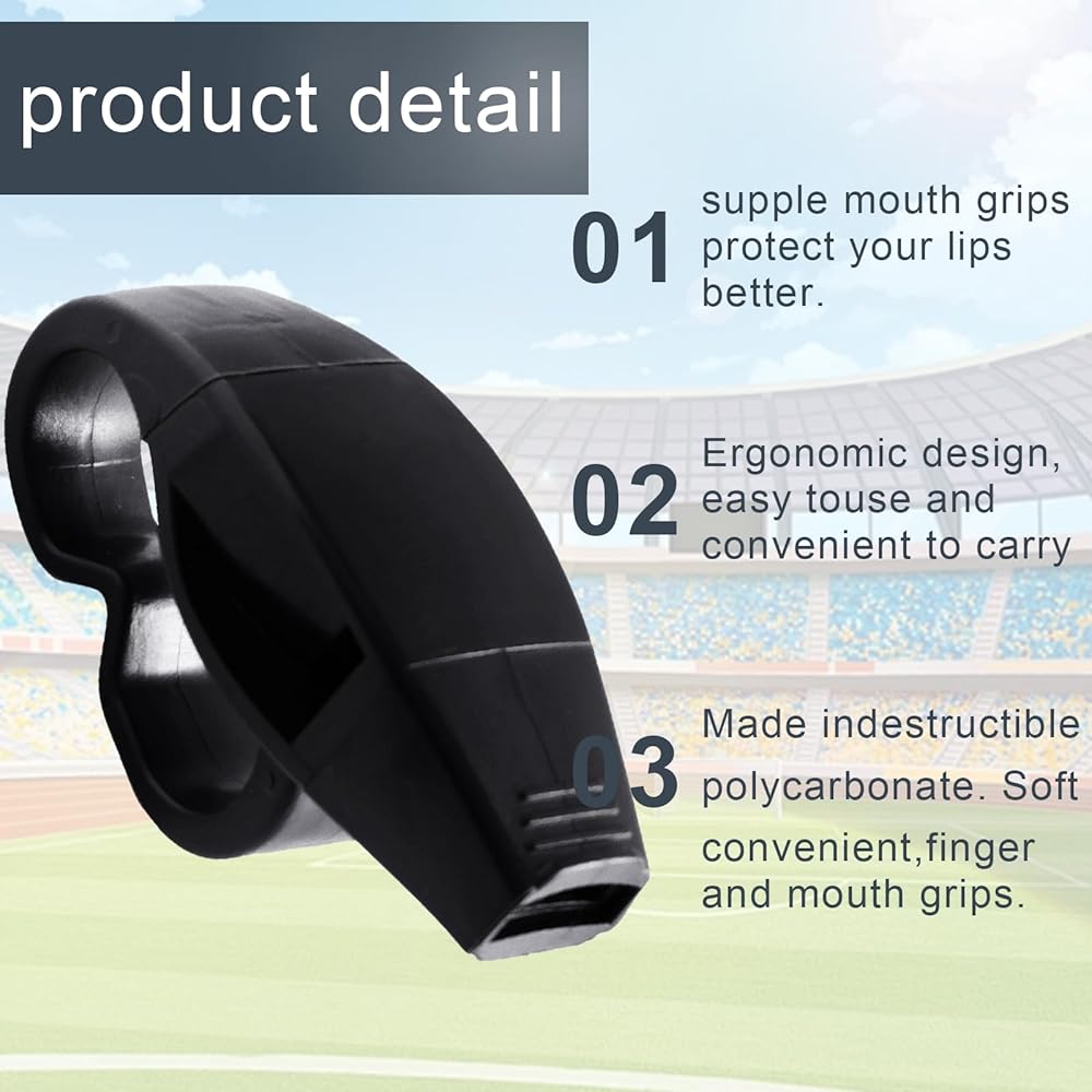 • صافرة الحكم هي صافرة غير لامعة مصنوعة من البولي كربونات غير القابلة للتدمير ومقابض الفم المرنة تحمي شفتيك بشكل أفضل، لذلك يمكنك استخدام هذه الصفارات لفترة طويلة بثقة.