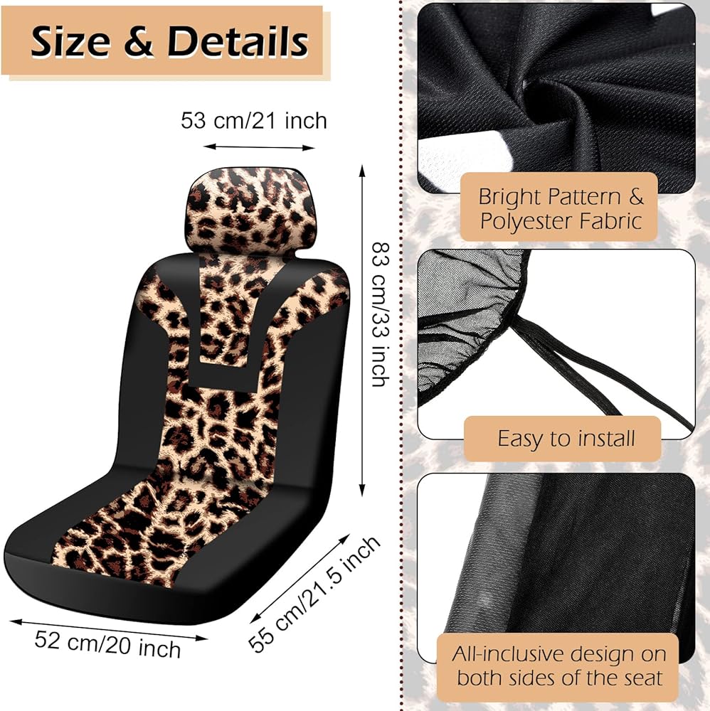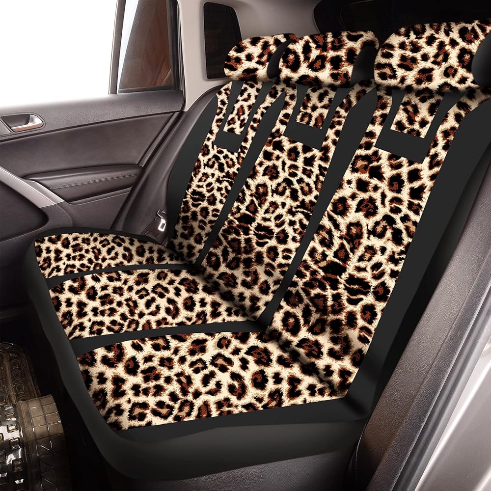 The full set of leopard seat cover are made of quality polyester material, not easy to fade, easy to maintain and care, hand washable and machine washable