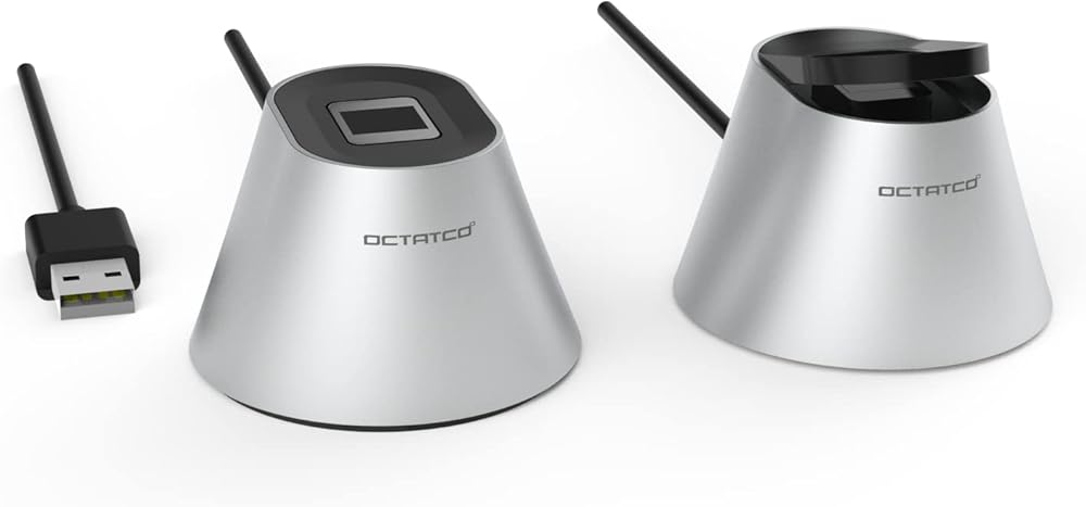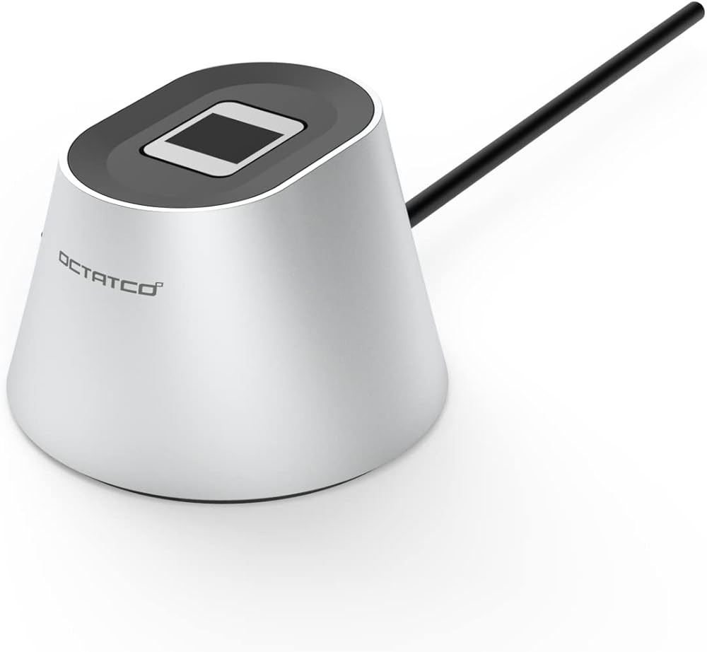 حامل سطح المكتب Octatco EzFinger2+ (فضي) - بصمة الإصبع FIDO2، مفتاح أمان U2F - يعمل مع Windows Hello وGoogle وOffice 365 والمزيد من الأنظمة الأساسية - مصادقة سريعة وآمنة بدون كلمة مرور.
