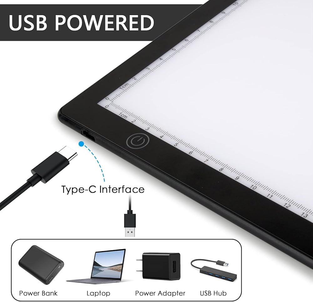 The light pad is made of high-quality light guide plate material, with advantages of ultra-thin and lightweight, and A4 size is large enough to hold multiple slides and films for viewing and scanning at the same time.