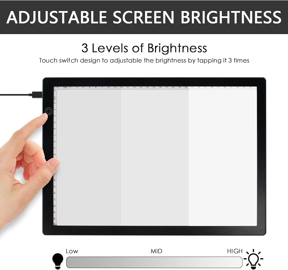 Our Film Viewer Light Box provides 3 levels of brightness to adjust by gently touching the on/off switch. The LED light source can distribute light soft and uniform without hot spot and dim point, to restore the lifelike effect of the object.