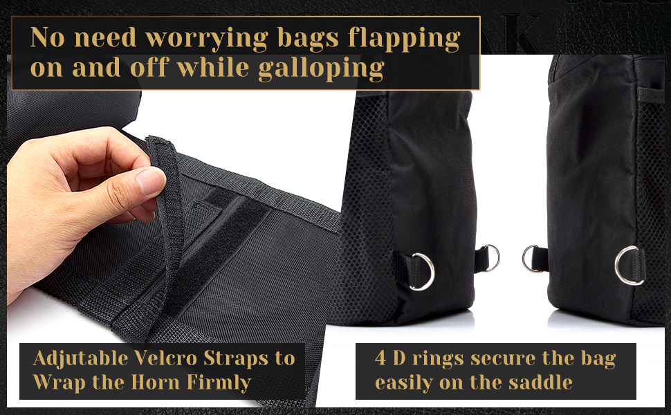 🐴 【هيكل آمن جيدًا】 تتميز حقائب قرن الحصان بأشرطة فيلكرو، ويمكن لفها بشكل آمن حول الحلق. يمكن تثبيت الحلقات على شكل حرف D في كل ركن من أركان الحقائب على سرجك لمنعه من الارتداد أو الانزلاق عند الهرولة أو الركض.