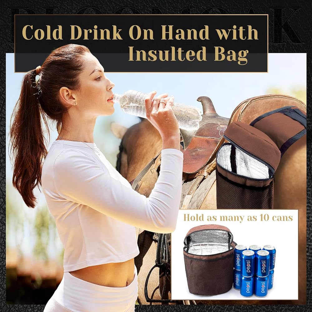 🐴 【حقيبة سرج تبريد معزولة】تتميز بجيب عازل من رقائق الألومنيوم، سهلة التنظيف، مثالية للحفاظ على مشروباتك باردة لساعات. كبيرة بما يكفي لاستيعاب 10 علب، وتوفر الوسادة السفلية المسطحة الصلبة الدعم الكافي، وتؤمن الموظفين جيدًا بالداخل.