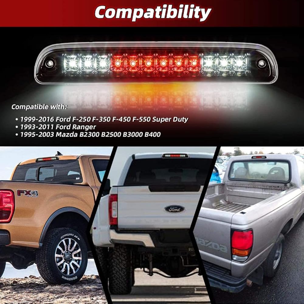 أحمر/أبيض 12 LED عدسة دخان عالية التركيب للفرامل الثالثة توقف الذيل ضوء مصباح البضائع بديل مقاوم للماء لفورد F-250 F-350 F-450 F-550 Super Duty 1999-2016 /Ford Ranger 1993-2011