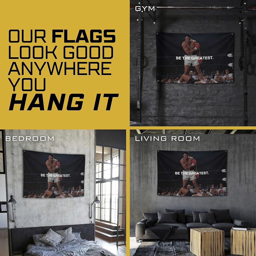 هدية الإلهام: هل تبحث عن هدية مهمة؟ يناسب هذا العلم الطلاب ورجال الأعمال وهواة صالة الألعاب الرياضية والأصدقاء - حيث يتردد مع لاعبي كمال الأجسام والملاكمين ومشجعي كروس فيت. مثالي لعيد الميلاد أو مناسبات الشكر، هذا العلم يشعل التحفيز. احصل على حزمة كاملة: Be The Greatest Flag بالإضافة إلى ملصق ملهم مطابق، ينشر التحفيز في كليهما.