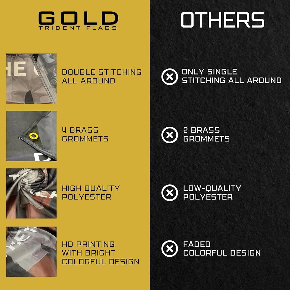 تحفيز متطور: قم بتعليق العلم التحفيزي Gold Trident في أي مكان للحصول على جرعة يومية من الإلهام. سواء كان ذلك في صالة الألعاب الرياضية المنزلية أو غرفة النوم أو كهف الرجل، فإن هذا العلم بمثابة تذكير للسعي دائمًا لتحقيق العظمة. إنه متعدد الاستخدامات - مثالي كعلم لصالة الألعاب الرياضية، وعلم النوم، وديكور المرآب، والمزيد!