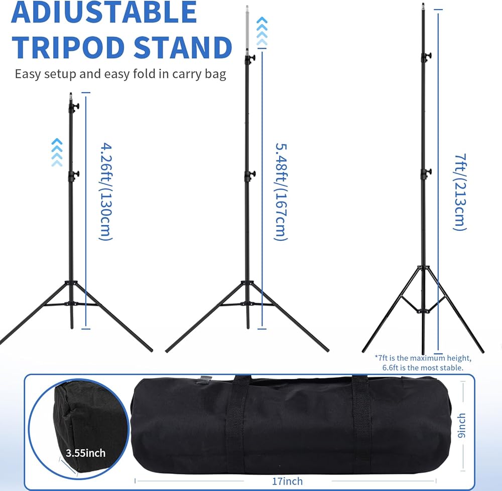 🎥【سهلة التجميع】: سهلة التجميع بواسطة شخص واحد دون أي أدوات. حامل الضوء قابل للتعديل في الارتفاع (3.9 قدم على الأقل - 6.6 قدم كحد أقصى). يحمل حامل الخلفية الخاص بك في مكانه لمساعدتك في وظائف التصوير الفوتوغرافي المختلفة في الخلفية.