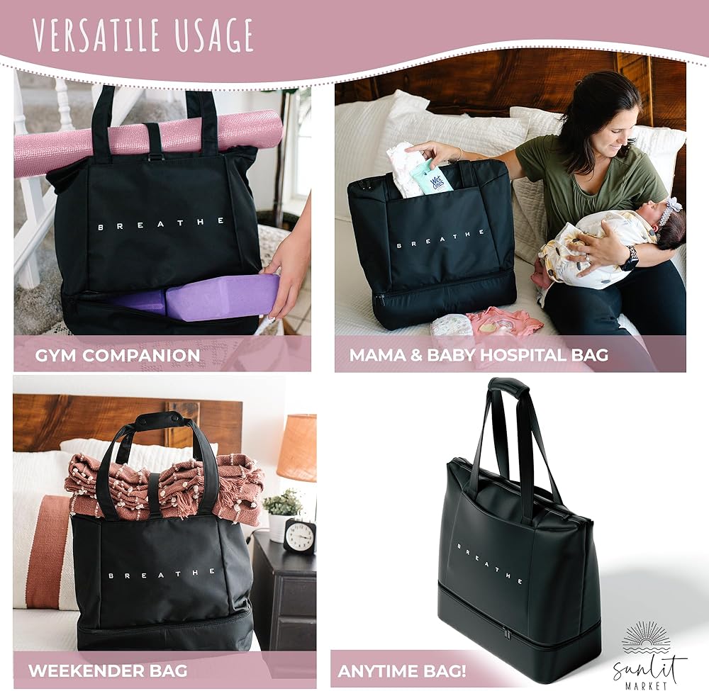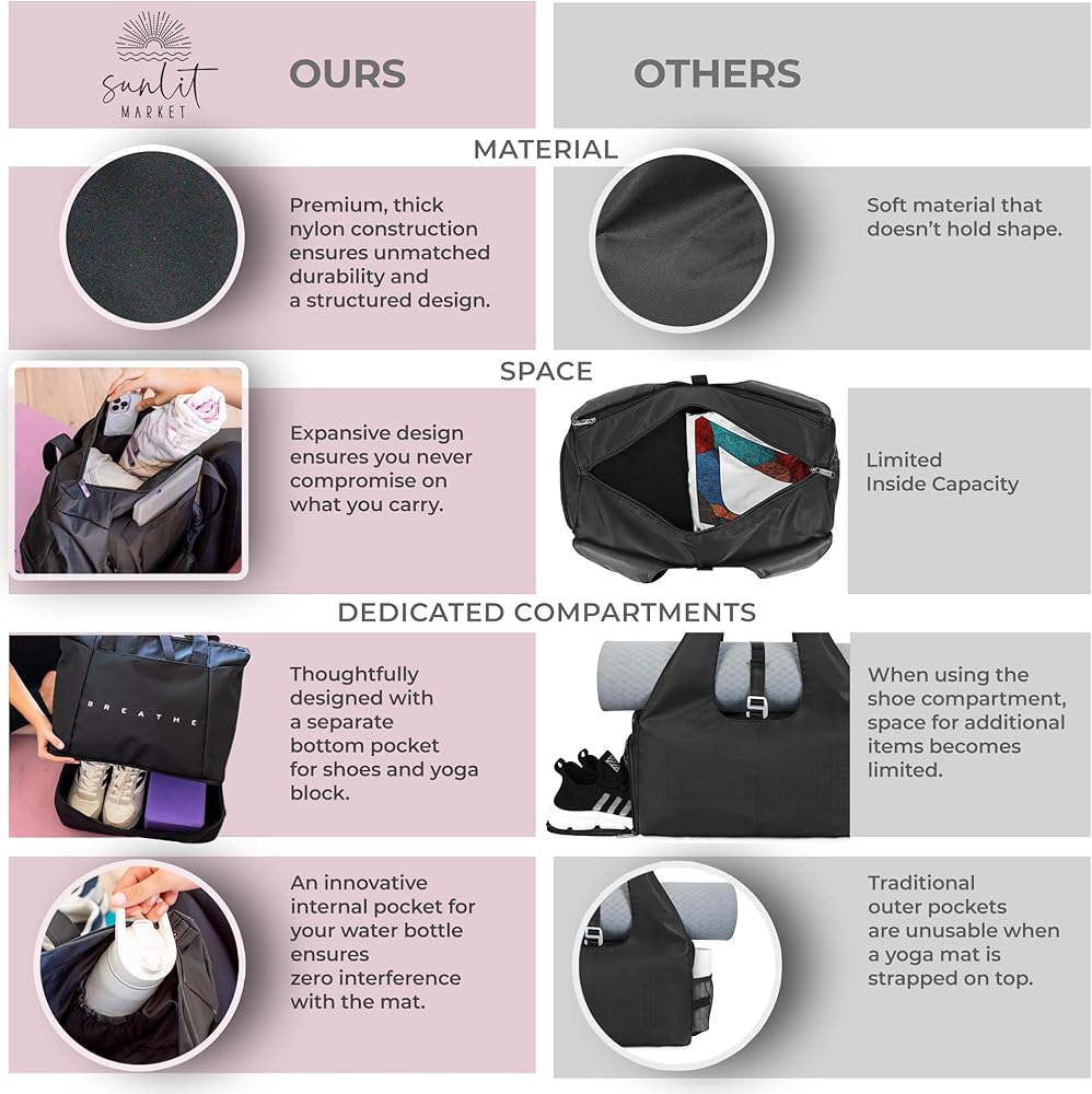 🌟 تعدد الاستخدامات خارج نطاق اليوجا: أكثر من مجرد حقيبة سجادة اليوجا أو حقيبة يوجا للسجادة، فهي مثالية لجلسات صالة الألعاب الرياضية، أو كحقيبة عطلة نهاية الأسبوع مع حجرة للأحذية، أو حتى كحقيبة مستشفى للأم والطفل. لم يكن الانتقال من اليوغا إلى التدريبات الرياضية أسهل من أي وقت مضى مع حقيبة اليوغا الكبيرة هذه.