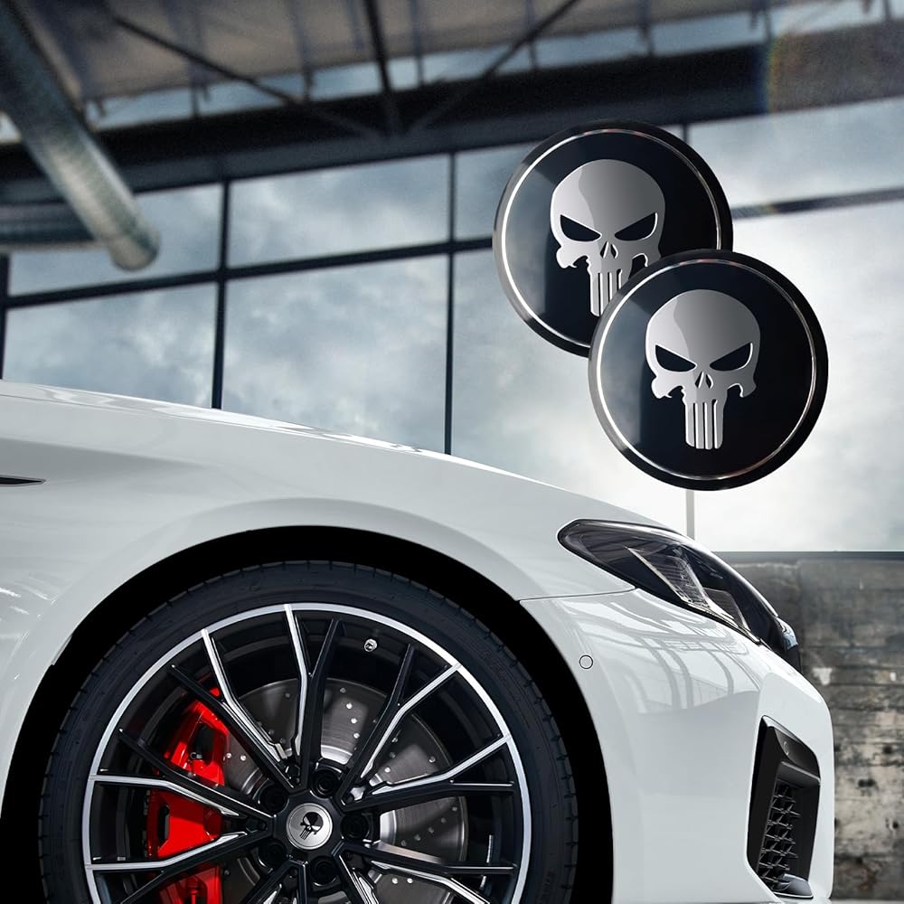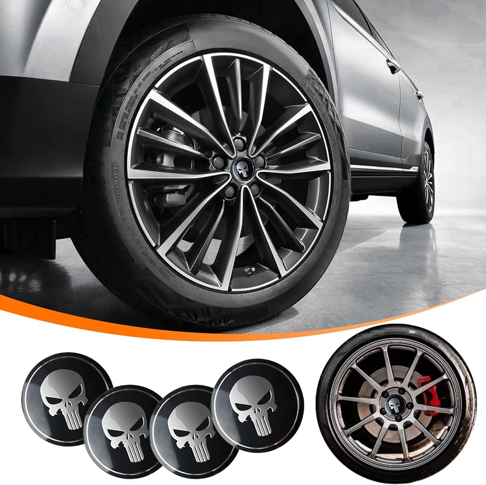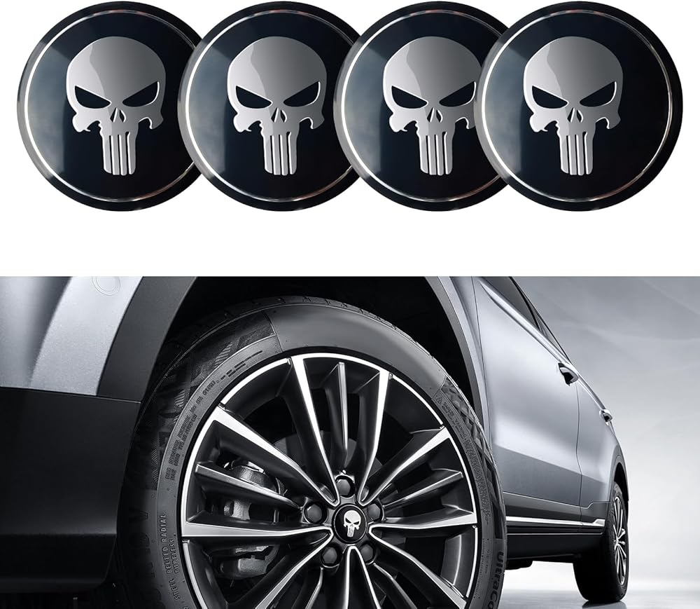 ملصق غطاء محور السيارة 4 قطع من GKmow، مقاس 2.2 بوصة مادة معدنية مطلية بدرجة حرارة عالية، ملصق شخصي بتصميم جمجمة، ملحقات زخرفية معدلة تلقائيًا، مناسب لمعظم موديلات السيارات (أسود)