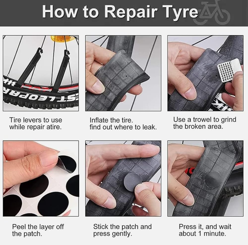 Tire repair helper --- With 2 Tire levers and patch kit, 1 Metal rasp, 2 Woods valve rubber bands