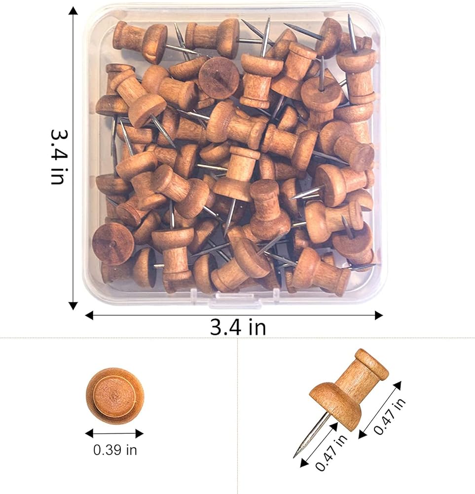 These thumb tacks is made of natural wood and steel needles. The needle point is made of rust-resistant and corrosion-resistant stainless steel.It is not easy to bend or break, and is durable.Comes with 60 Count Wooden Push Pins in a clear plastic box which is convenient for keeping push pins neatly stored and your desktop organized.The push pin has a strong 1/2 inch grounded steel point and 1/2 inch wooden head, easy to insert and remove. The wood is specially treated to make it strong and durable. These thumbtacks are effective at fastening things to cork board, bulletin boards, notice boards, maps and hang photos and posters on. Note: Including cork boards, foam boards, and paper boards.