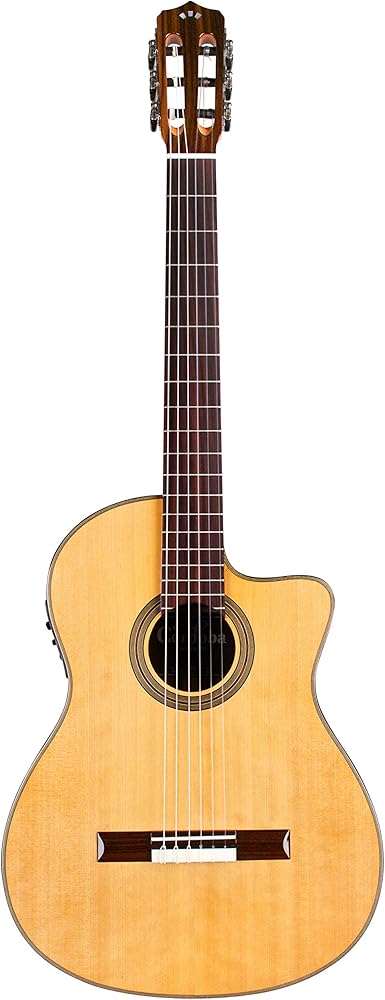 Entry-level crossover guitar featuring a comfortable, slim steel-string style neck (48mm nut width) with radiused fingerboard