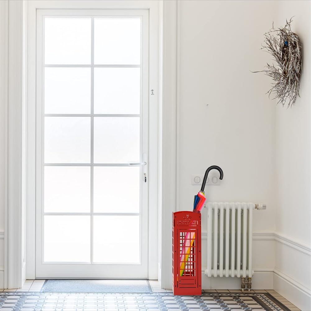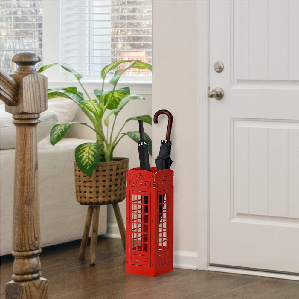 مصمم ليدوم طويلاً: مصنوع من هيكل معدني متين غير لامع وقاعدة صلبة، يضمن حامل المظلة الخاص بنا دعمًا لا يتزعزع لضرورياتك. سواء كانت مظلات ذات حجم كلاسيكي، أو عصي المشي، أو مظلات جولف كبيرة جدًا، فإن هذا الحامل جاهز لاستيعابه.